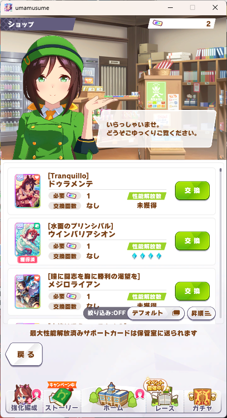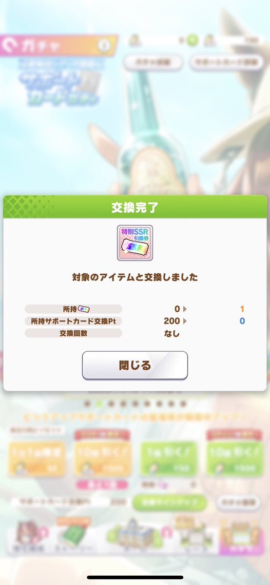 新育成シナリオ開幕 サポートカードガチャを10連しました(*´ω`*) 40連爆死して1天井までひいたので特別SSR引換券と交換して特別SSR引換券を使ってSSRの保科健子と交換しました♪ pic.x.com/mVk0oqONl8