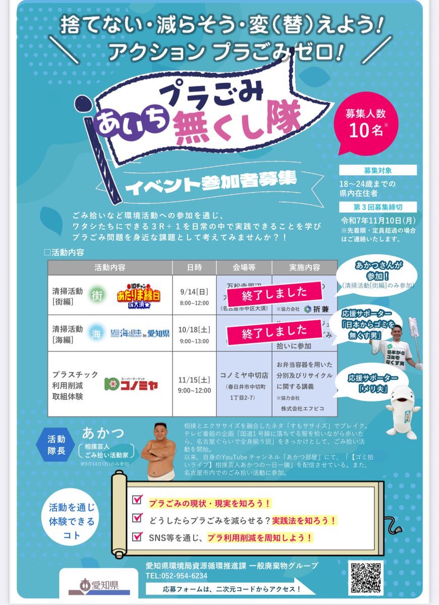 あいちプラごみ無くし隊、第3回目の活動日時と場所が決まりました👀 今回はスーパーマットコノミヤ中切店さんで、お弁当などに使われているプラスチック製の容器についての講義を行います✍️ 応援サポーターは、おなじみメリ夫! ぜひ、お気軽にご参加ください #あいちプラごみ無くし隊 #愛知県 pic.x.com/DjuGHIwieU