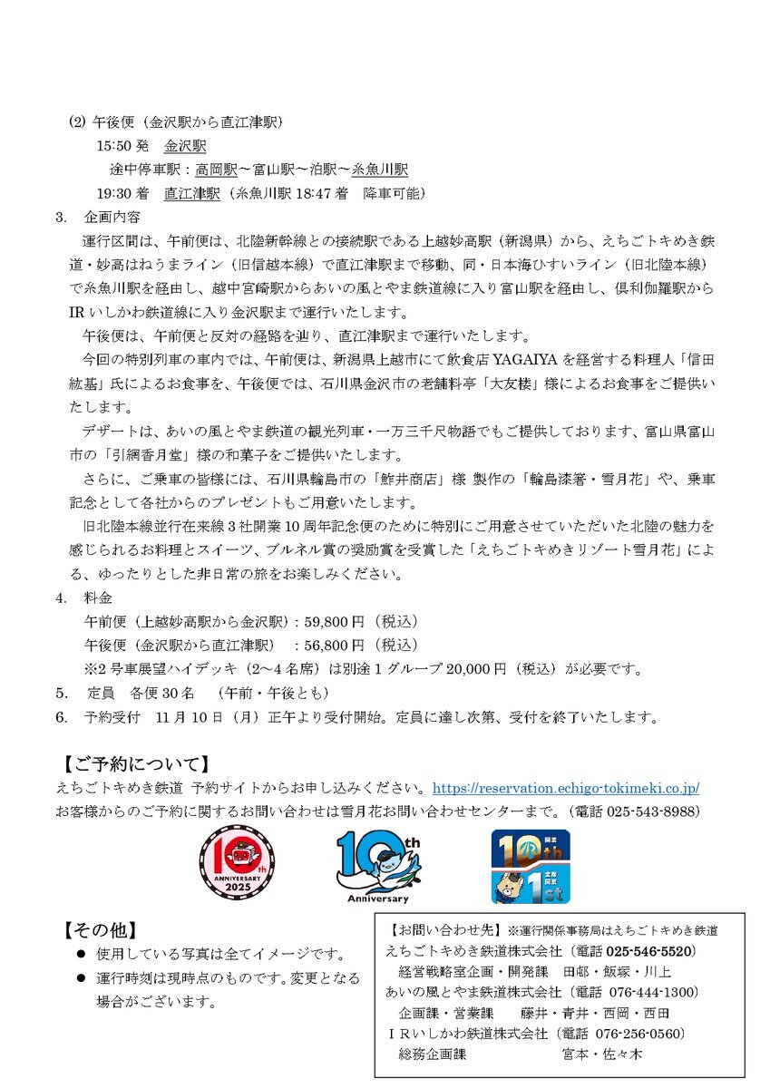 #えちごトキめき鉄道 と #あいの風とやま鉄道 と #IRいしかわ鉄道 が開業10周年を迎え 3社連携企画として 上越妙高駅(新潟県)と金沢駅(石川県)の直通運転を #えちごトキめきリゾート雪月花 を使用し 実施することになりました! 運行日は 12月6日(土) #能登半島地震 の復興支援として👇 pic.x.com/VhMgVXWjMb