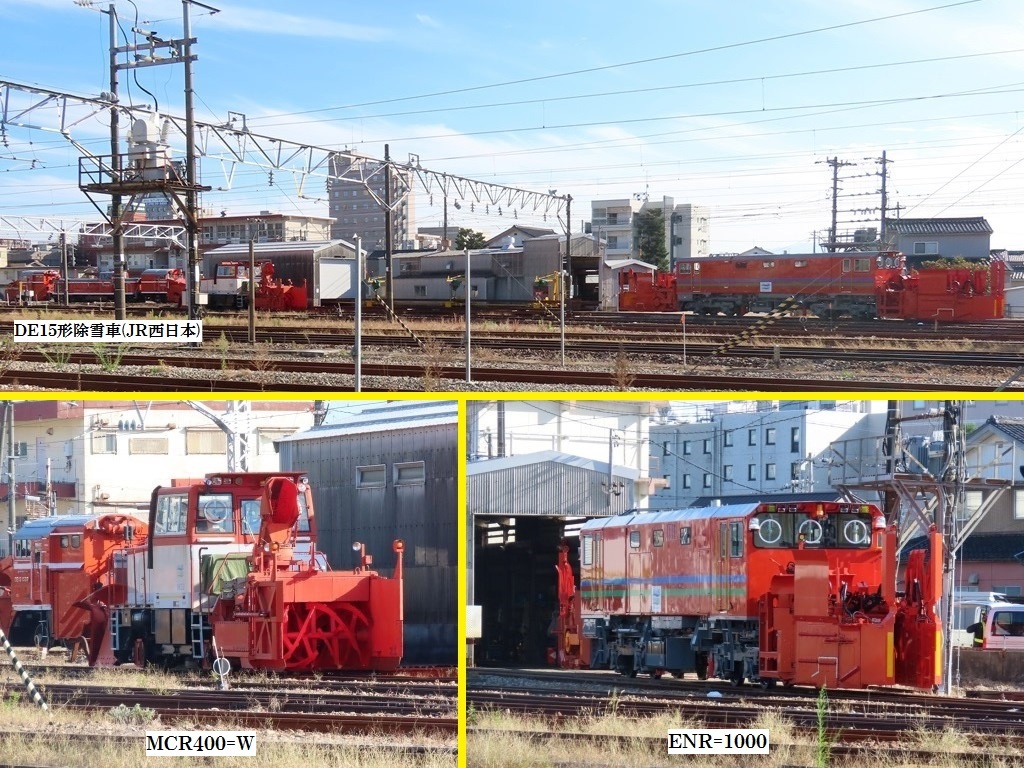 #鉄道、#保守用車、#あいの風とやま鉄道。MCR400-W:400馬力、軌道モーターカー(投排雪機付)。ENR=1000:1000馬力、大型投排雪保守用車。高岡駅構内 pic.x.com/yOBpPsxoke