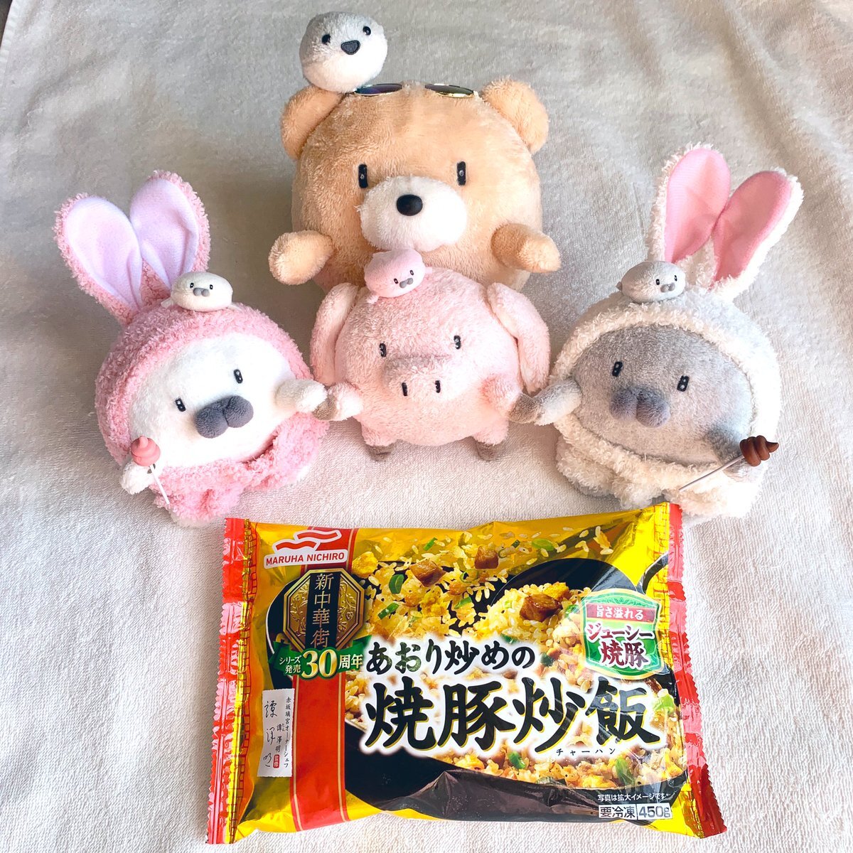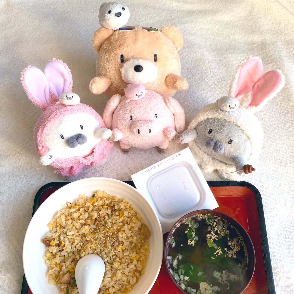 朝ごはんはチャーハンでちゅた! お味噌汁にはモロヘイヤを加えてヘルシー! 自然の恵みに感謝でちゅー!! (*'∞'*)ノ✨ #かわざらし #あおり炒めの焼豚炒飯 #ぬい撮り #超ぬい pic.x.com/7KJvjbqCkE