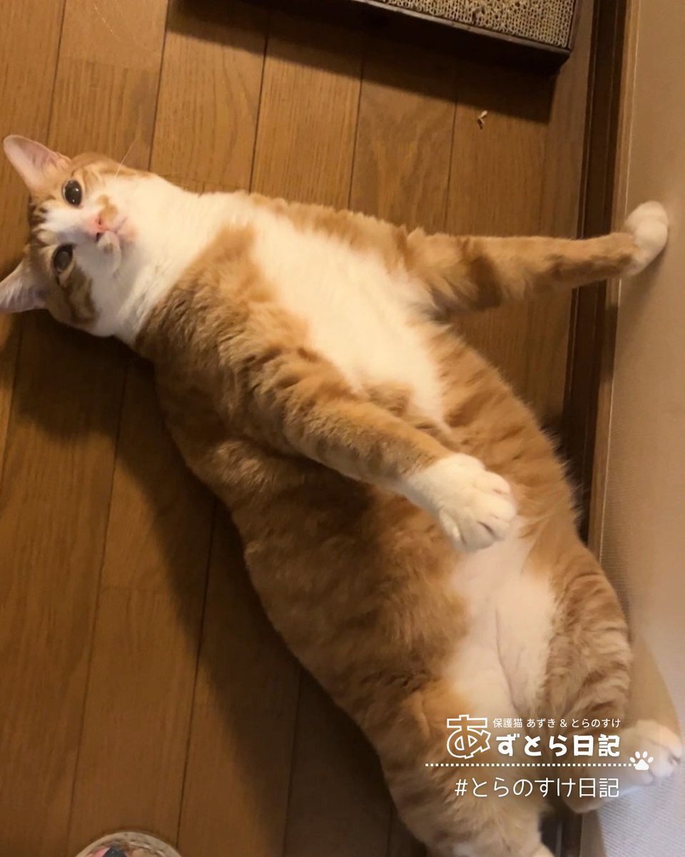 最近、リビングから玄関へ向かう廊下で ひっくりかえってるとらのすけクン🧡 ̖́- パパさんの帰りを待ってます そんな風に待ってると知ったらパパ喜ぶね 🧡「まだかにゃ」 💬 「みなさんの猫ちゃんはどんなことしてますか?」 ─── ⋆⋅☆⋅⋆ #あずとら日記 #猫好きさんと繋がりたい #にゃんこ pic.x.com/CfR2So3X8F
