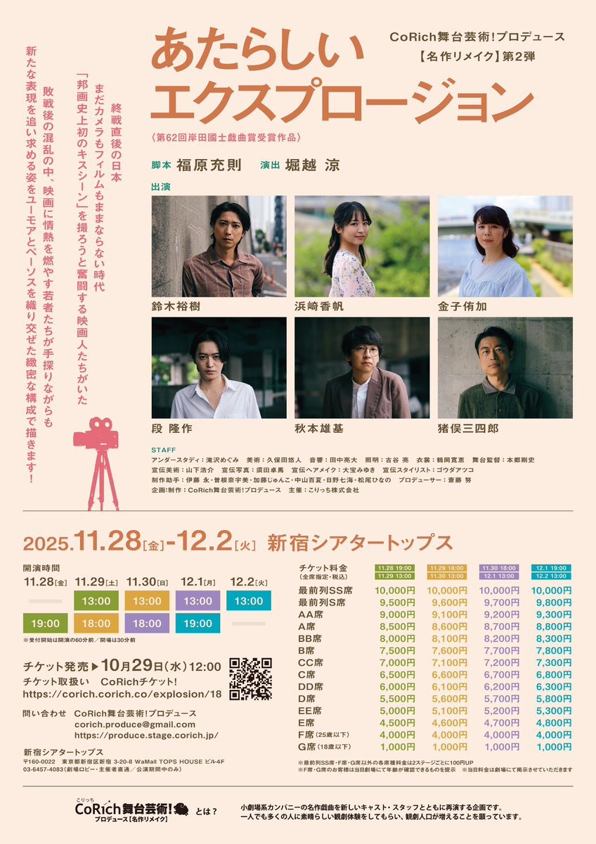 #あたらしいエクスプロージョン 】 📅 11/28(金)〜12/2(火) 📍 新宿シアタートップス あの名作をリメイク!第2弾✌🏻 ╭━━━━━━━━━━━━━╮  ❗️本日より一般販売開始❕ ╰━━━━━━v━━━━━━╯ x.com/corich_produce…