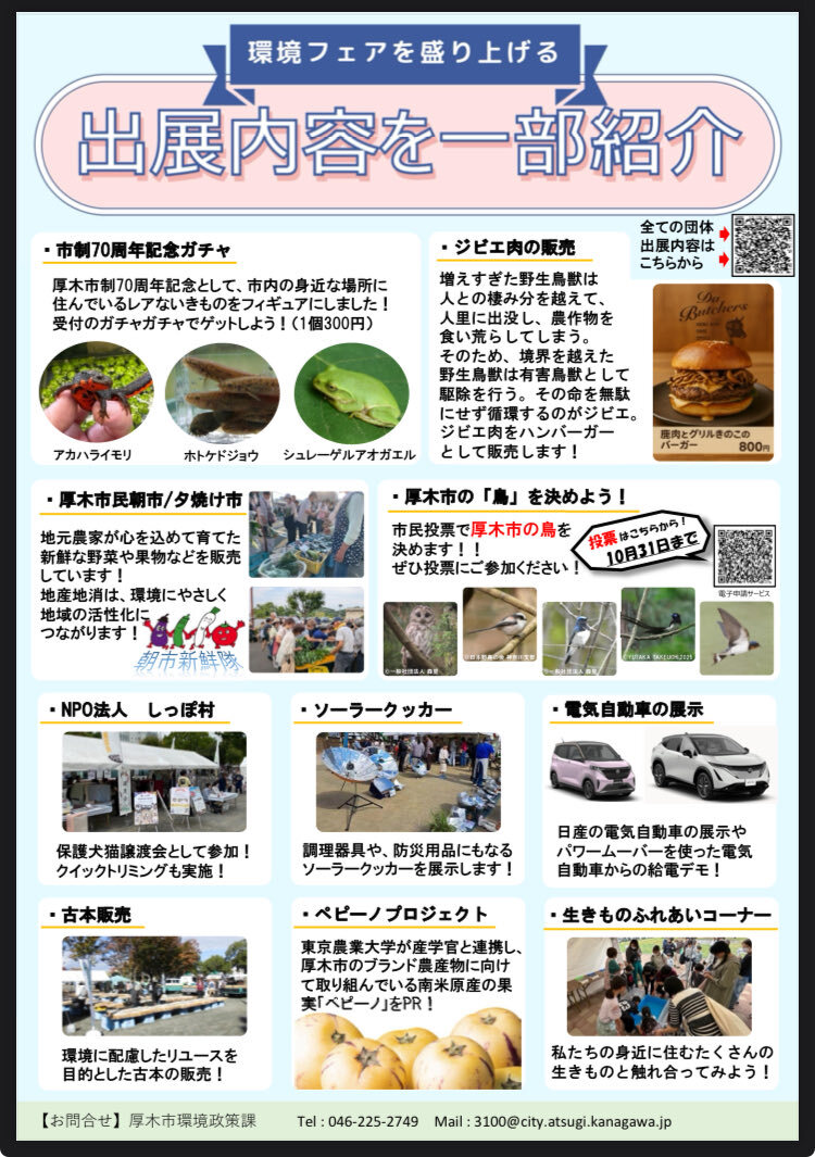 昨日は厚木中央公園にて、あつぎ環境フェアが開催されました。 あいにくの天気でしたが、多くの方が来場されておりそれぞれのブースを楽しんでいられました。 #厚木市 #環境 #あつぎ環境フェア #ソーラークッカー #ペピーノ #市の鳥 #神奈川工科大学 #自然 #厚木市議会議員 #高橋しんや pic.x.com/EEuChYFU54