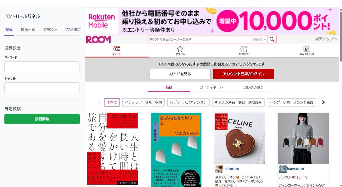取り合えずガワだけ実装。なにを基準に自動投稿させようか。。。楽天ROOM初心者なのが痛手(´;ω;`) #楽天ROOM自動投稿 #AI自動化 #個人開発 #あなたのシステムエンジニア pic.x.com/Jggrrxz3sD