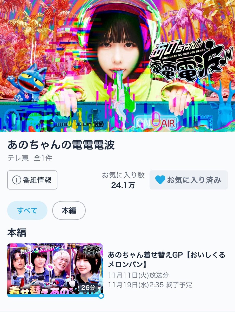 テレ東「あのちゃんの電電電波」 あのちゃん着せ替えGP【おいしくるメロンパン】 #TVer #あのちゃんの電電電波 #電電電波 @tx_dendendenpa tver.jp/episodes/epvg8…