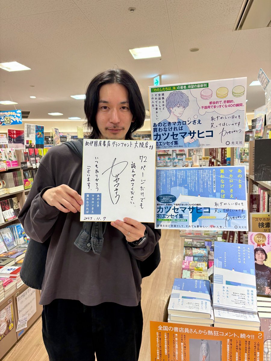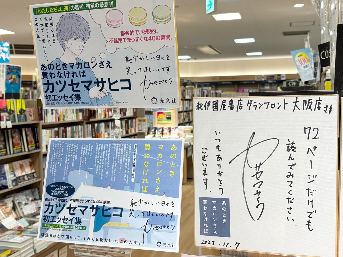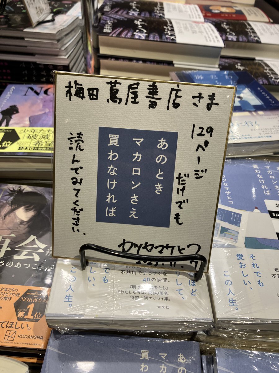 本日の『#あのときマカロンさえ買わなければ』刊行記念 #カツセマサヒコ さんサイン会にご参加いただいたお客様、ご来店ありがとうございました! カツセさんの直筆サイン色紙を話題の本コーナーで展示中です。名古屋駅にお寄りの際はぜひお立ち寄り下さい。 #光文社 @kobunsha_promo pic.x.com/DCKNnibANc