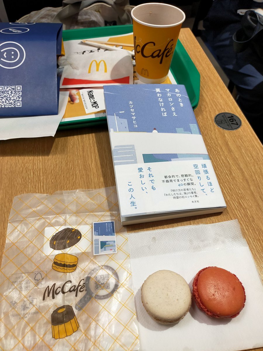 ギリギリで間に合いました💦 占いどおり!(笑) コレはなんとしてもマカロン🧁と記念撮影せねば‼️と思ったものの、休日のオシャレカフェはどこも激混みで💦…ふと、マックカフェの存在思い出した私、天才だと思いました✌ #カツセマサヒコ #あのときマカロンさえ買わなければ pic.x.com/NSix1LvghZ x.com/katsuse_m/stat…