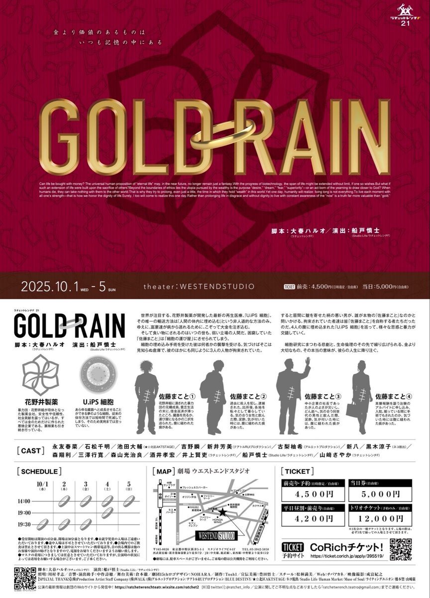 (2025.10.15追加情報) おかげさまでチケットご予約好評につき11/5(水)に2公演追加することなりました! 追加公演タイムテーブル 11月5日(水) 14:00 (C+D) 17:00 (A+B) こちらの回もご予約ぜひ! ticket.corich.jp/apply/400023/