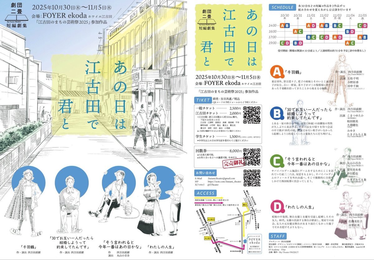 #劇団二畳 #あの日は江古田で君と 江古田のまちの芸術祭2025参加作品 劇団二畳 短編劇集「あの日は江古田で君と」10/30~11/5(公演日1日追加!) 公演詳細 note.com/2tatami_theate… ご予約はこちら ticket.corich.jp/apply/400023/