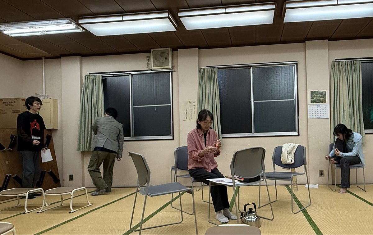#劇団二畳 #あの日は江古田で君と 「千羽鶴」チーム稽古! 小道具の確認や出ハケのタイミングなどを中心に通し稽古。 着実に積み上がっています。 楽しみ! ご予約 ticket.corich.jp/apply/400023/ pic.x.com/643gvnuMMl