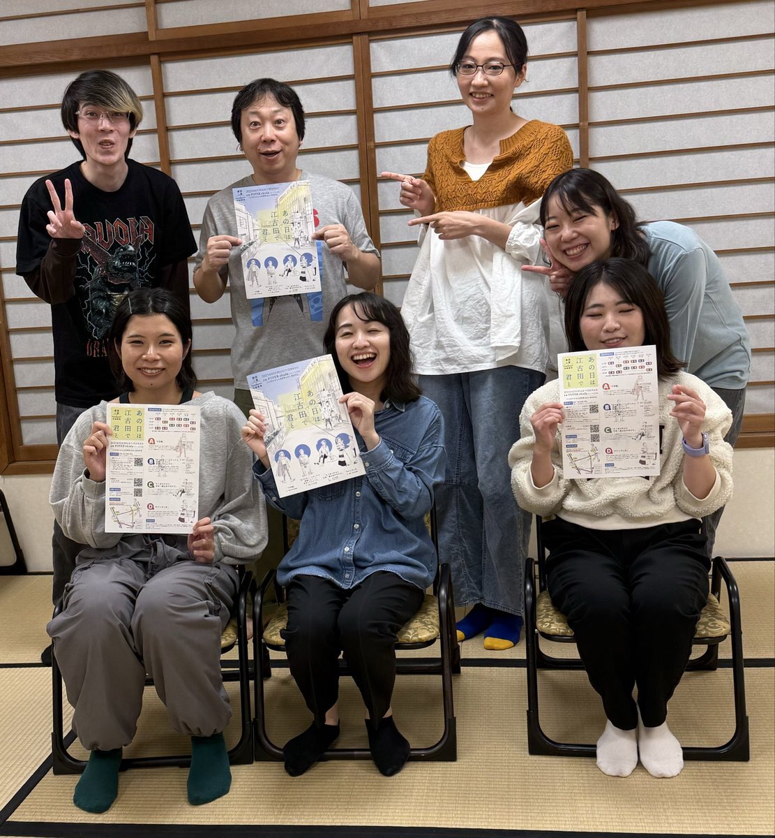 #劇団二畳 #あの日は江古田で君と 昨日は「千羽鶴」チーム、「30で〜」チームの合同稽古! うちうちですがお互いの進捗お披露目の場となり、和気アイアイとしつつもピリリとした場となりました。 この2チーム(A+B)回は完売回もあり残席少なめですのでお早めに! ご予約 ticket.corich.jp/apply/400023/ pic.x.com/APBi1ERVO1