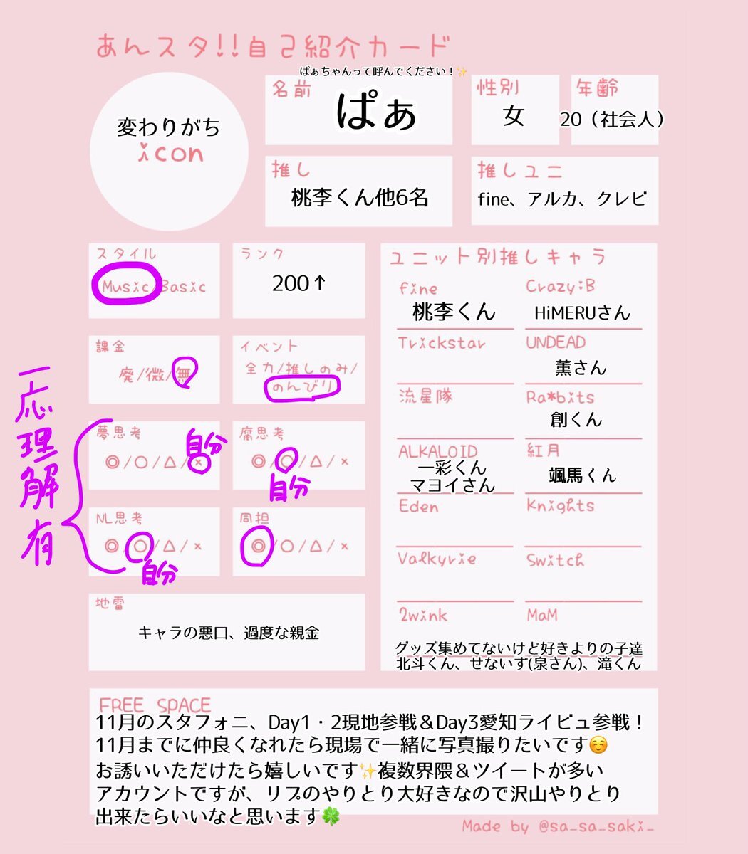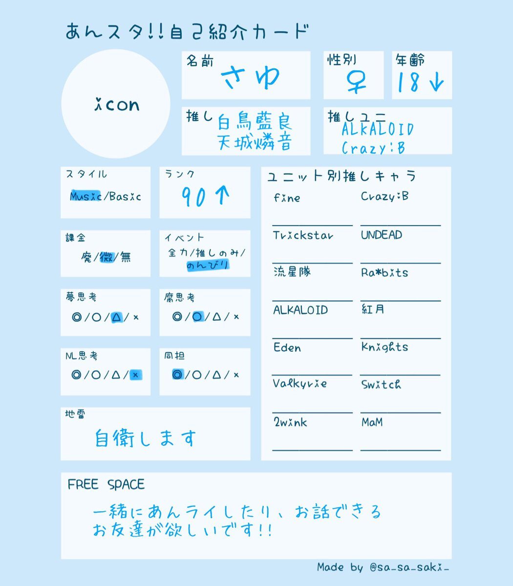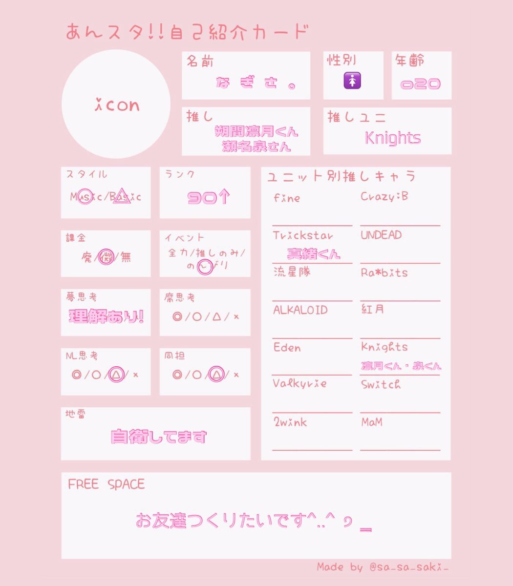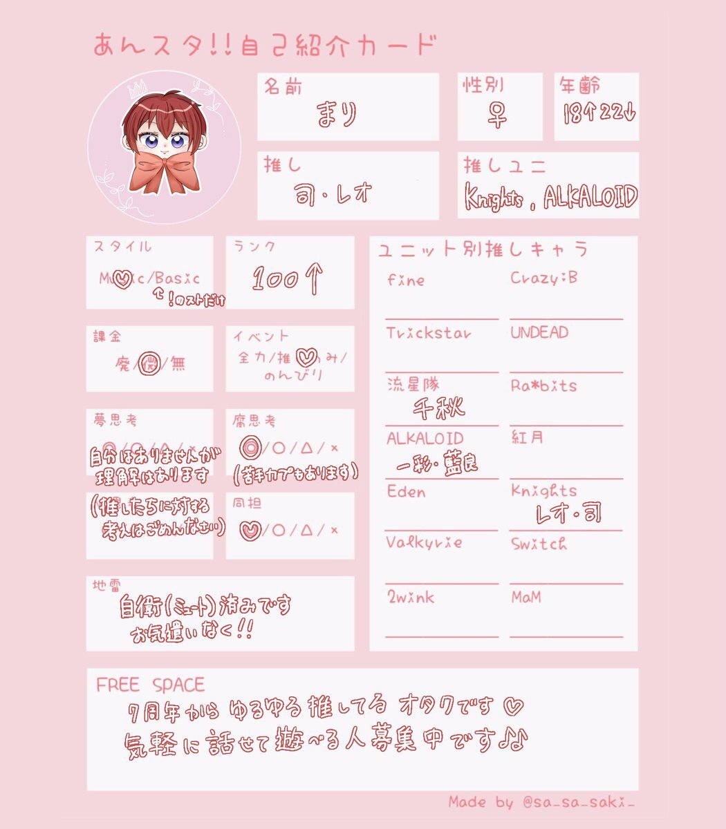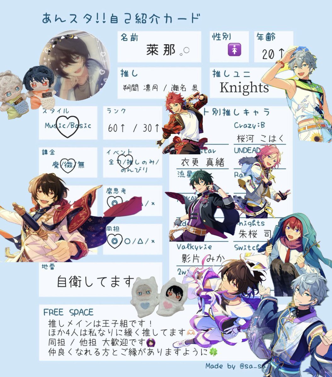 @xxx 🔗先に反応お願いいたします🌟 #あんスタ好きさんと繋がりたい #あんスタ好きな人と繋がりたい #あんスタ自己紹介カード x.com/sleeslsleesl/s…