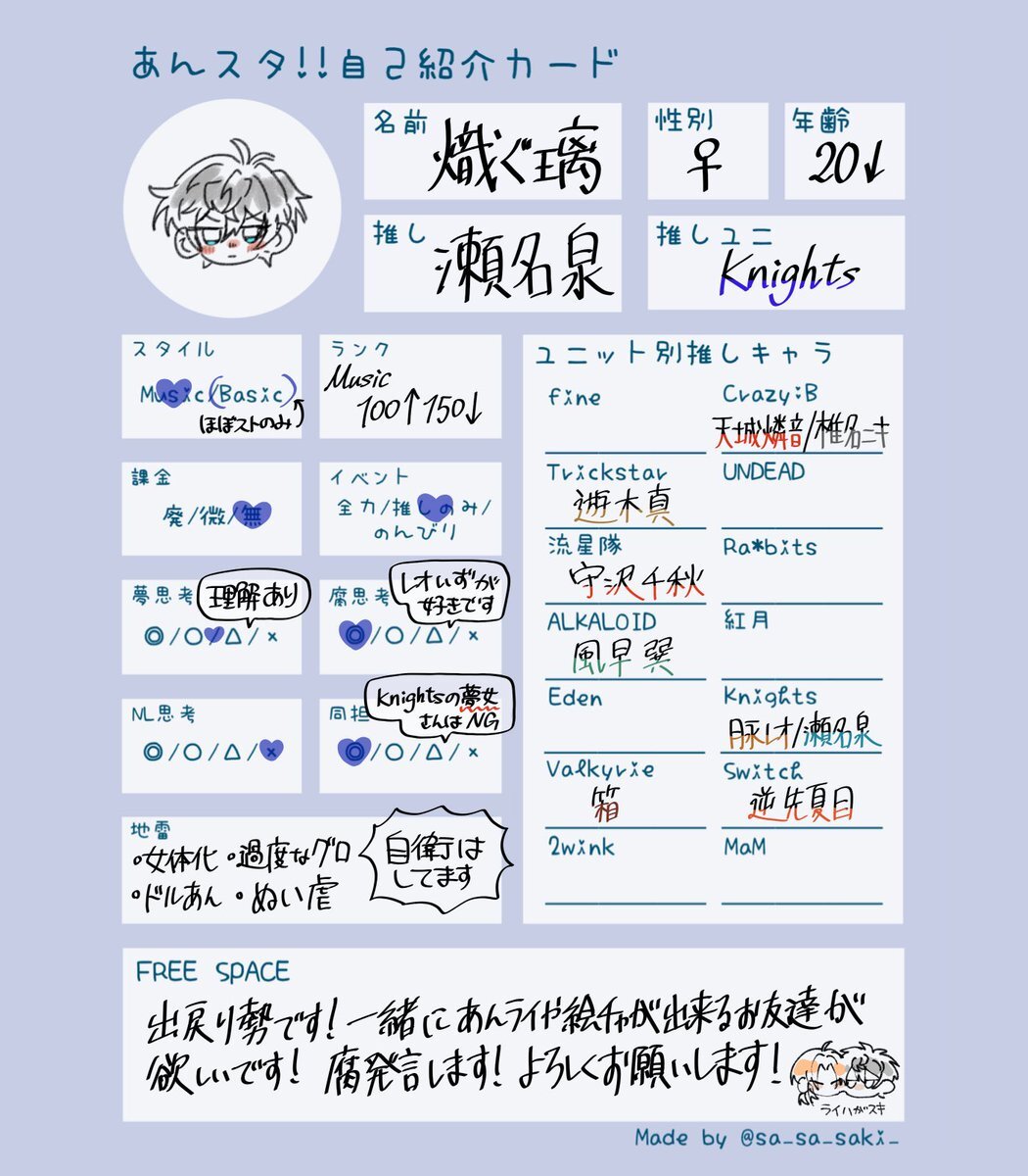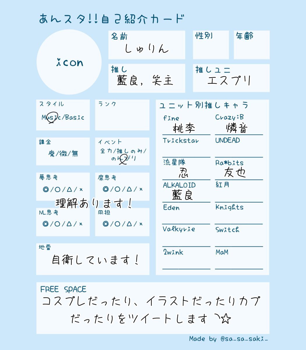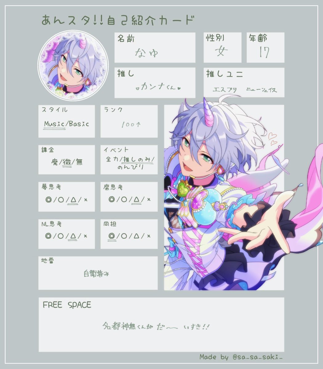 10月になってしまったけど何卒 #あんスタ好きさんと繋がりたい #あんスタ自己紹介カード #あんスタ絵描きさんと繋がりたい x.com/5OYFMsqbWQ6217…