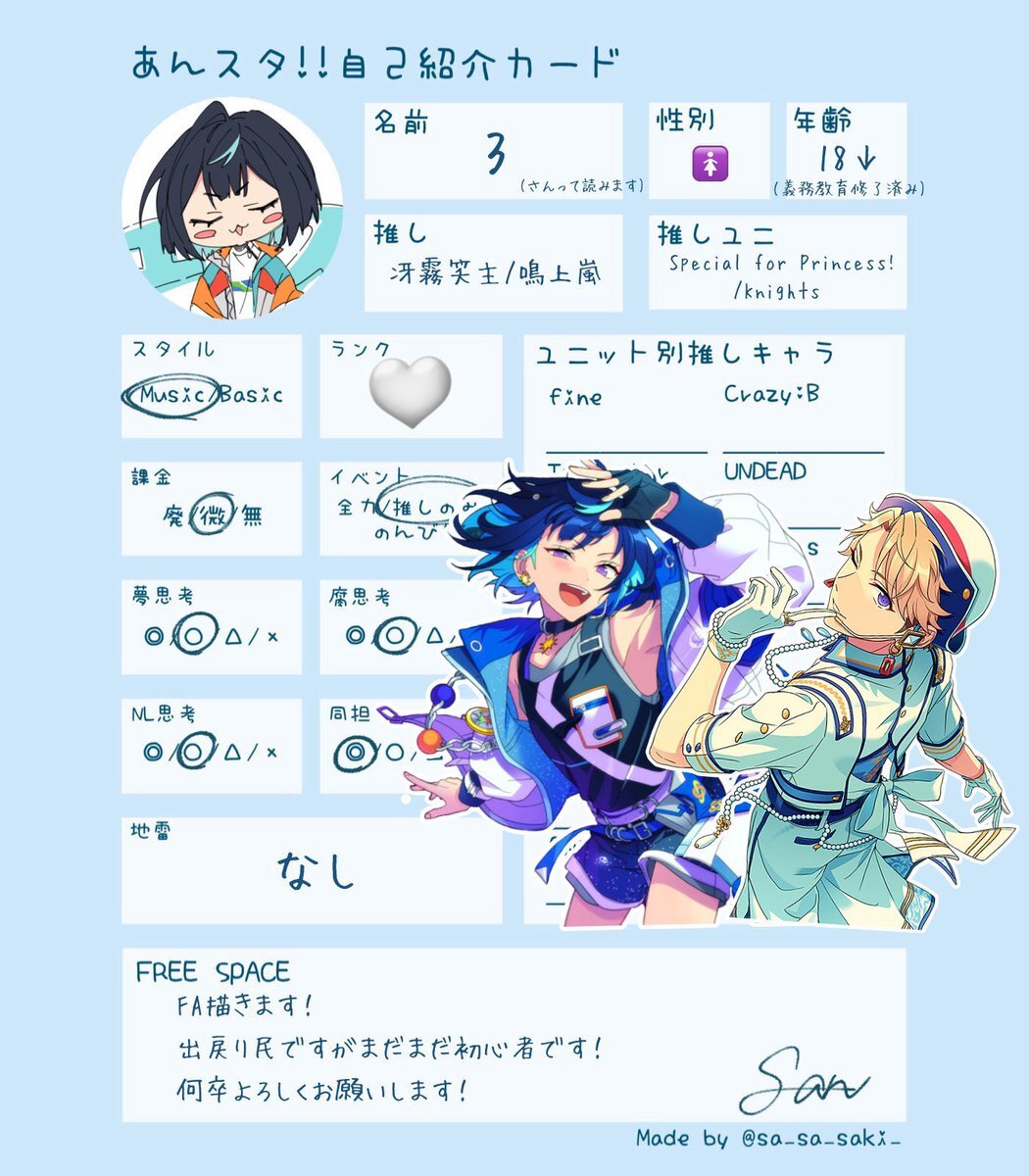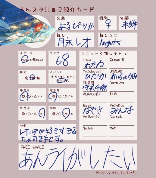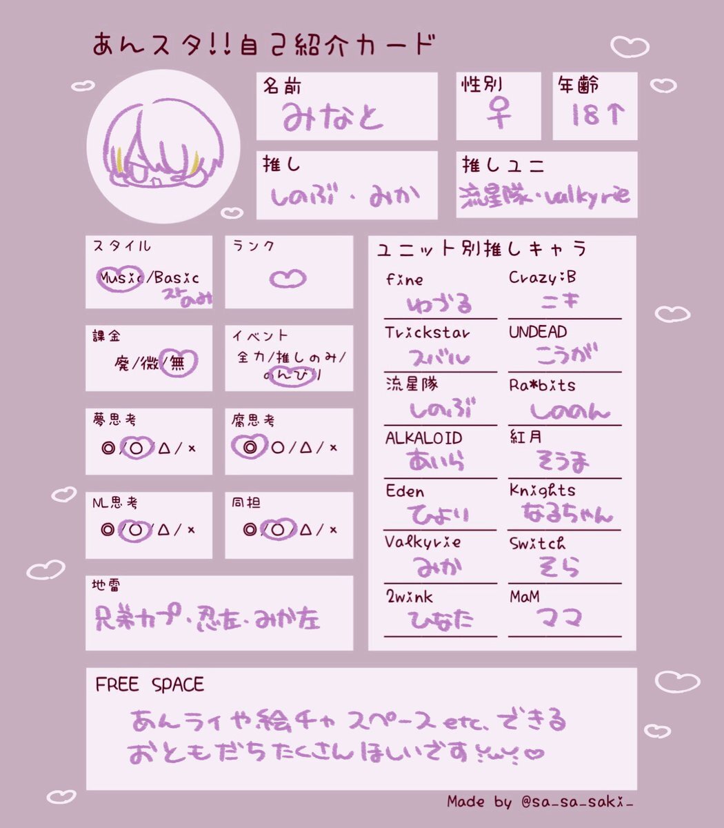 10月になってしまったけど何卒 #あんスタ好きさんと繋がりたい #あんスタ自己紹介カード #あんスタ絵描きさんと繋がりたい x.com/5OYFMsqbWQ6217…