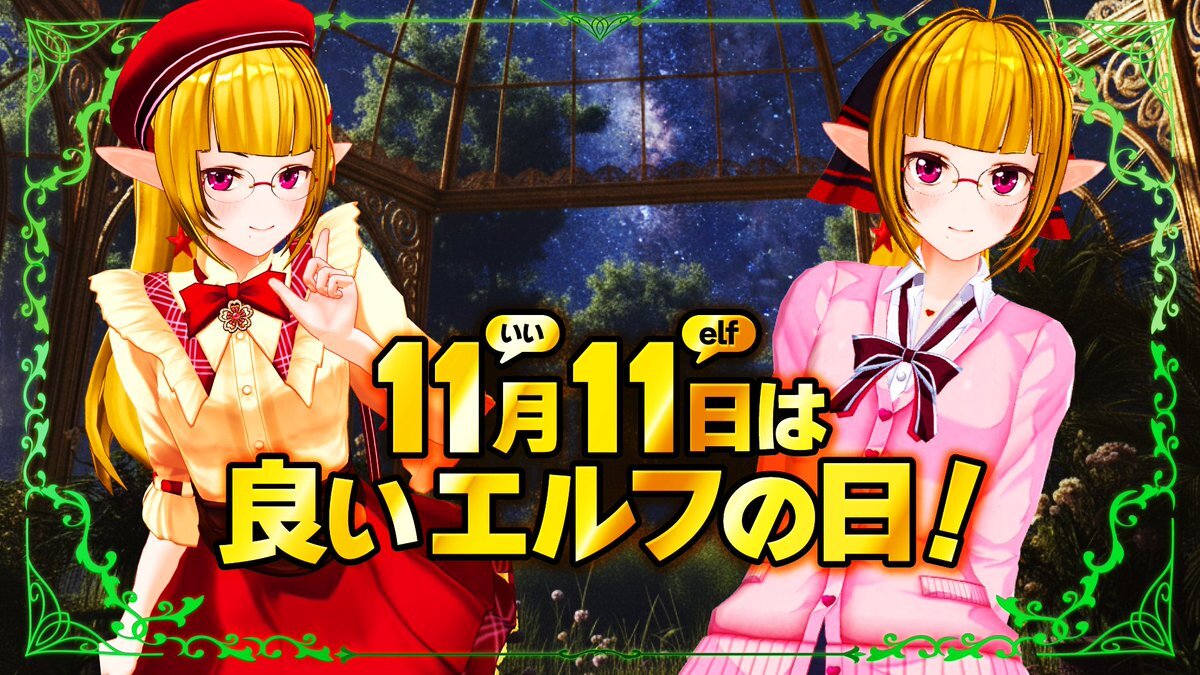 おはよー!本日11月11日は #いいエルフの日 って事で今夜22:00より新衣装お披露目配信があります!新衣装だけじゃなく新モデルでもあります。この怠惰なエルフがまさかの今日間に合いました。 お誕生日も兼ねてのお祝い配信なので乾杯しようね🥂 【待機所】 youtube.com/live/sJxoBZ_rl… pic.x.com/UioqnBP5xS
