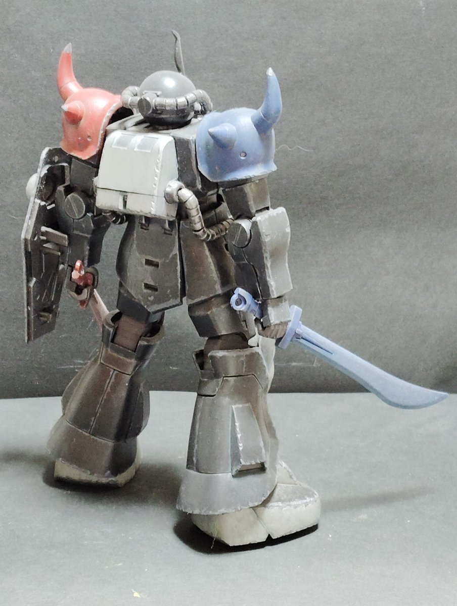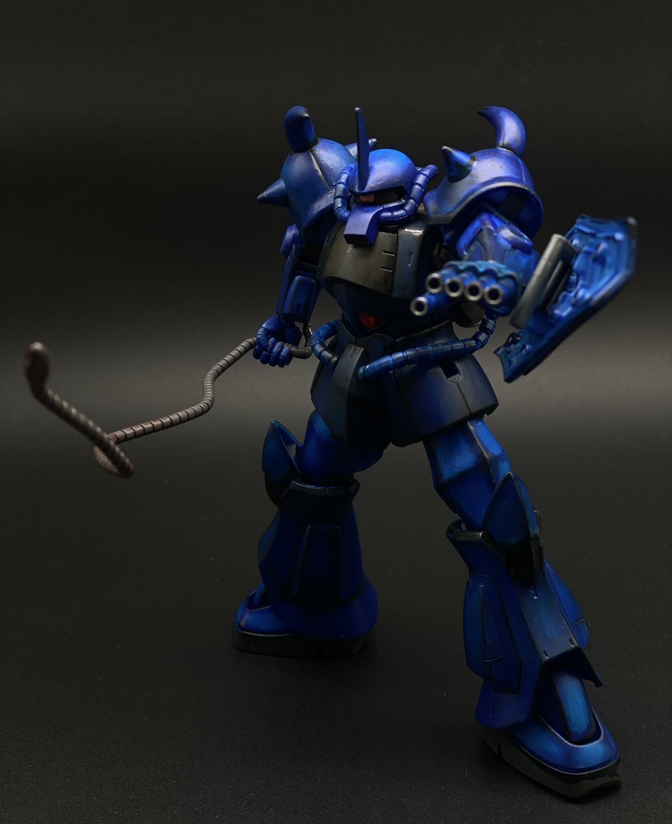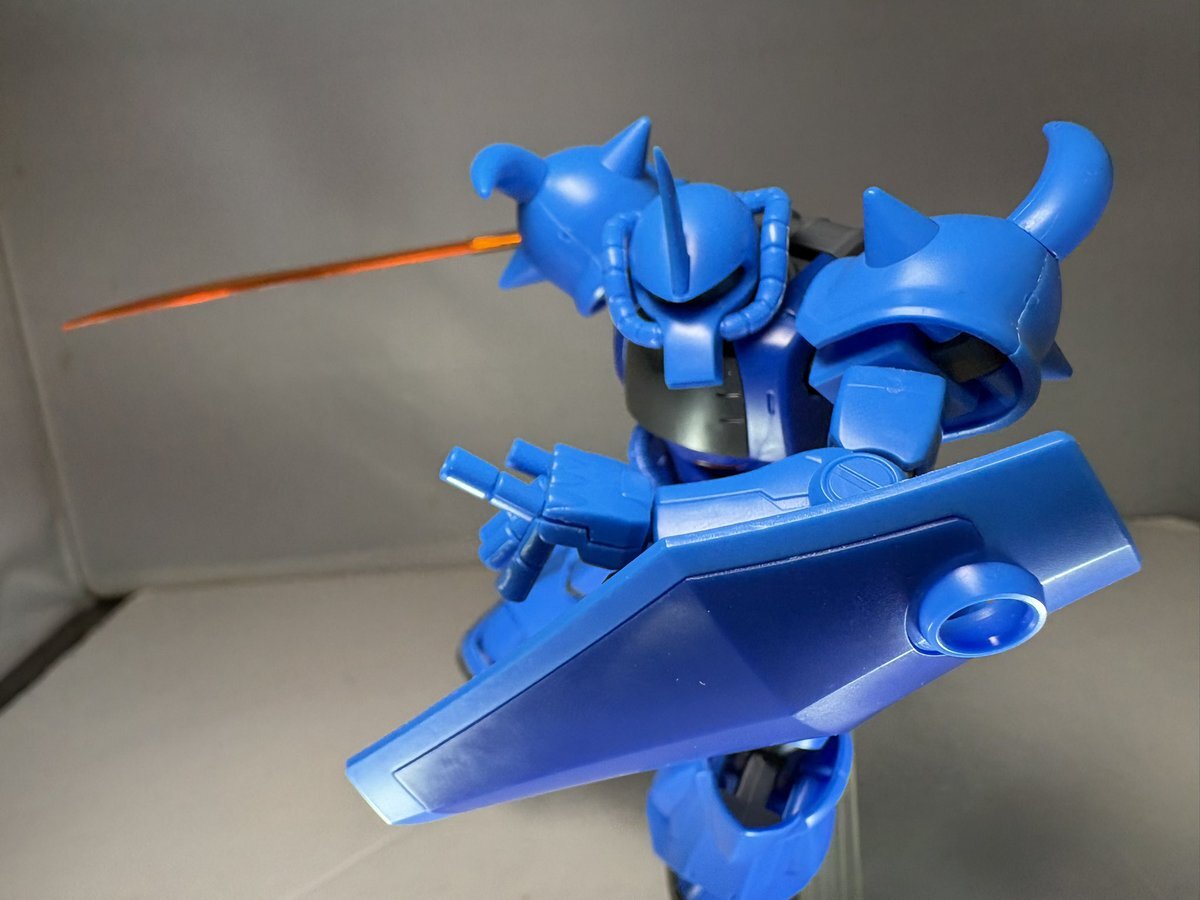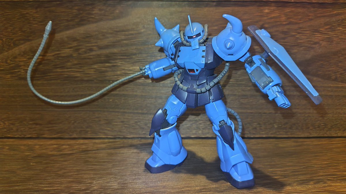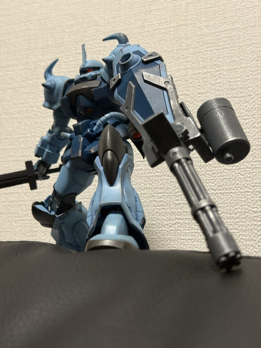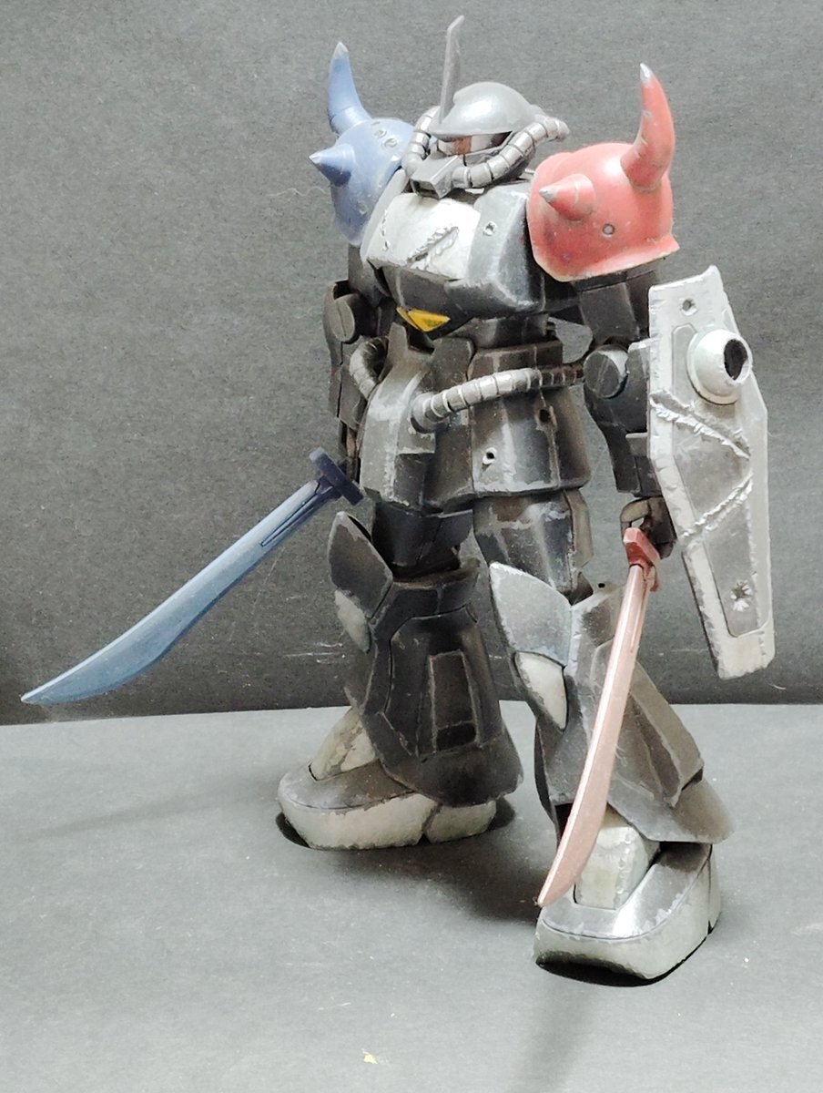 遅刻したけど... グフでウェザリングの練習させてもらったなぁ(´ᴗ ·̫ ᴗ`) この子ツノも、盾も、モノアイもついて丸みあるから、色々やってみるのにめっちゃよかった。 #いいグフの日 pic.x.com/e7TRa6uDRI