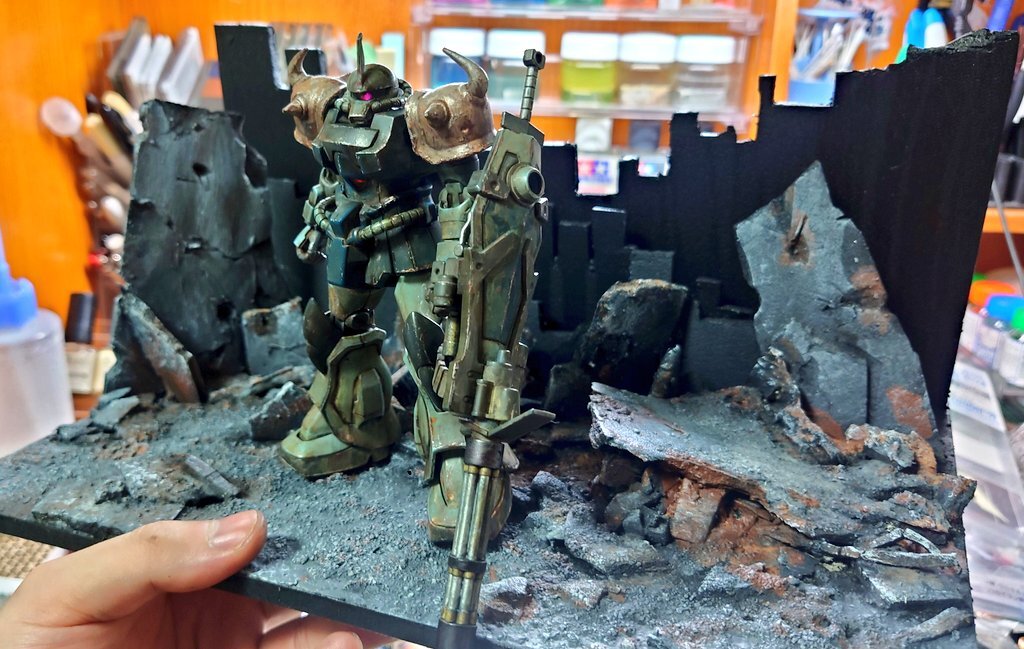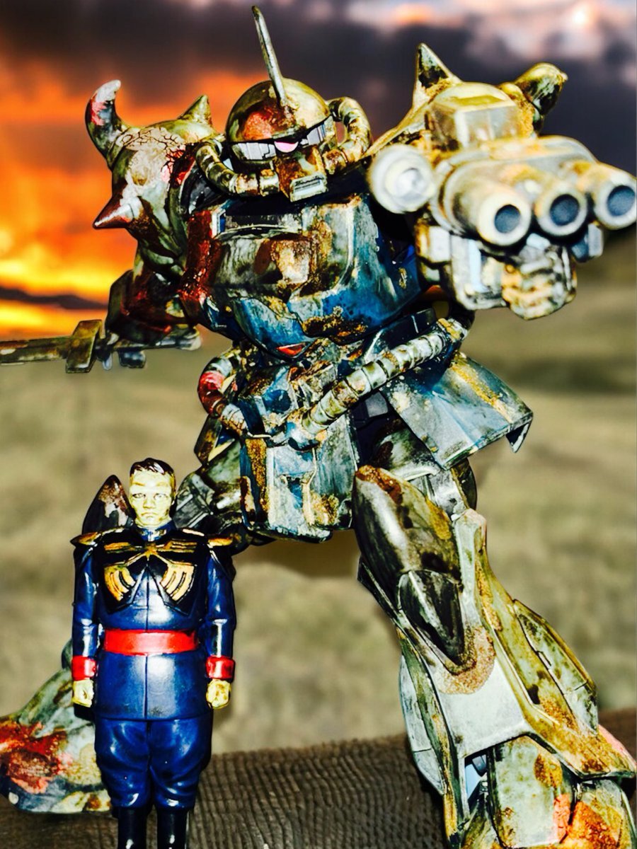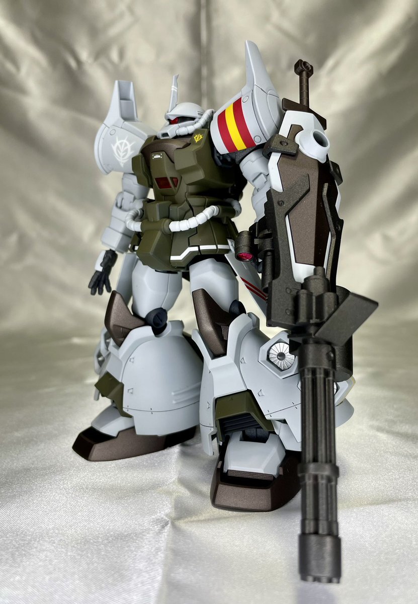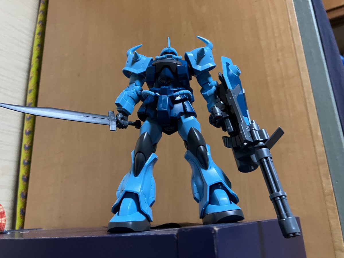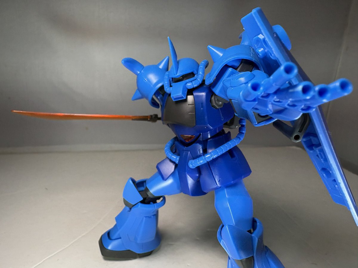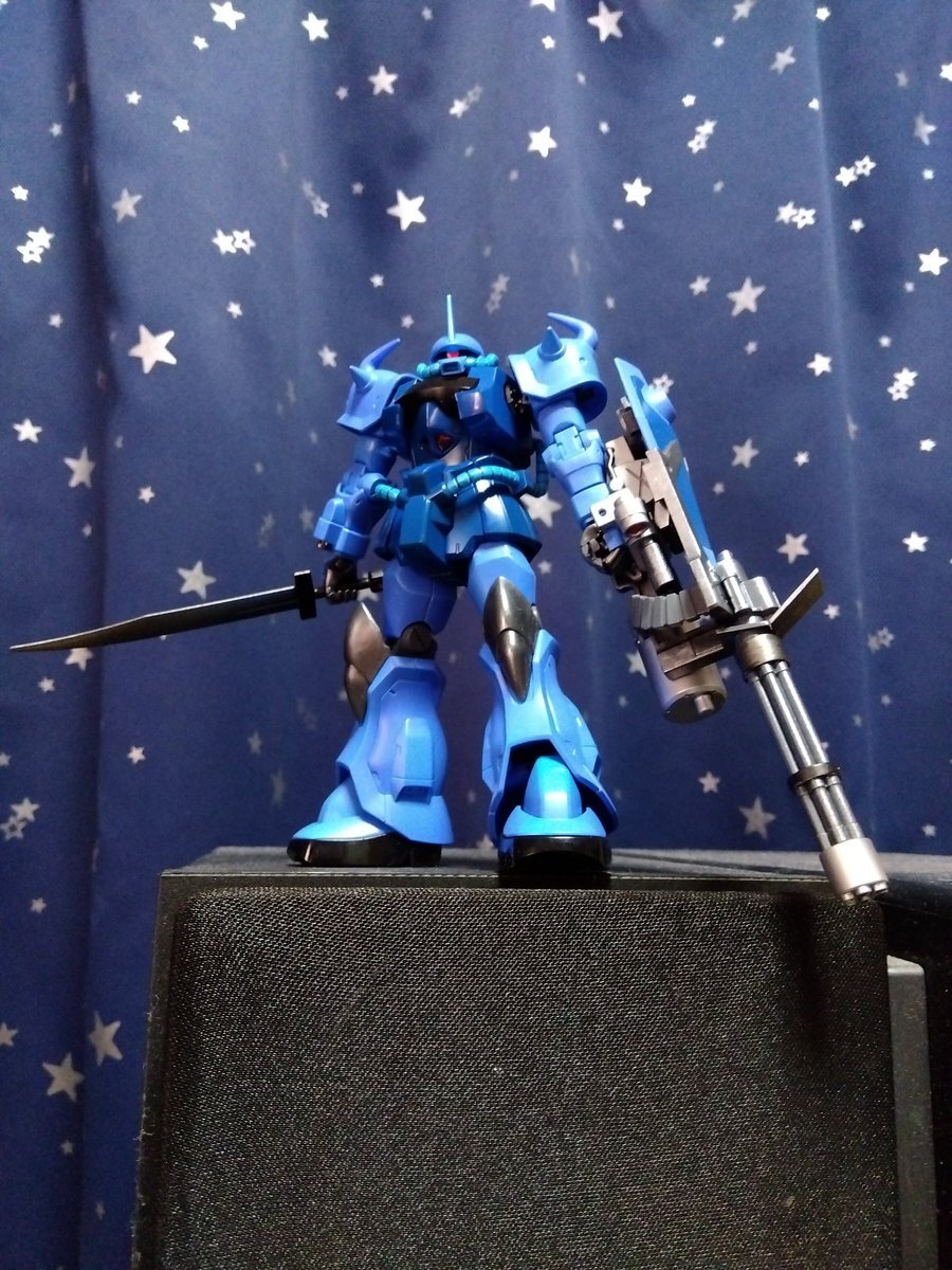 遅刻したけど... グフでウェザリングの練習させてもらったなぁ(´ᴗ ·̫ ᴗ`) この子ツノも、盾も、モノアイもついて丸みあるから、色々やってみるのにめっちゃよかった。 #いいグフの日 pic.x.com/e7TRa6uDRI