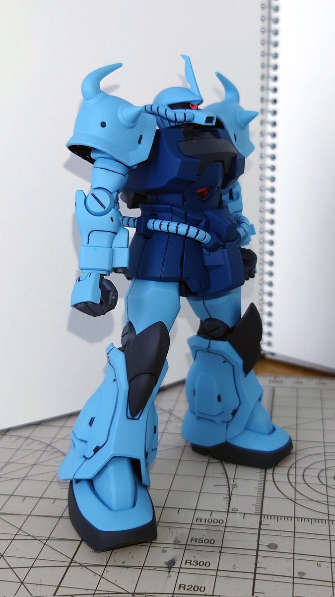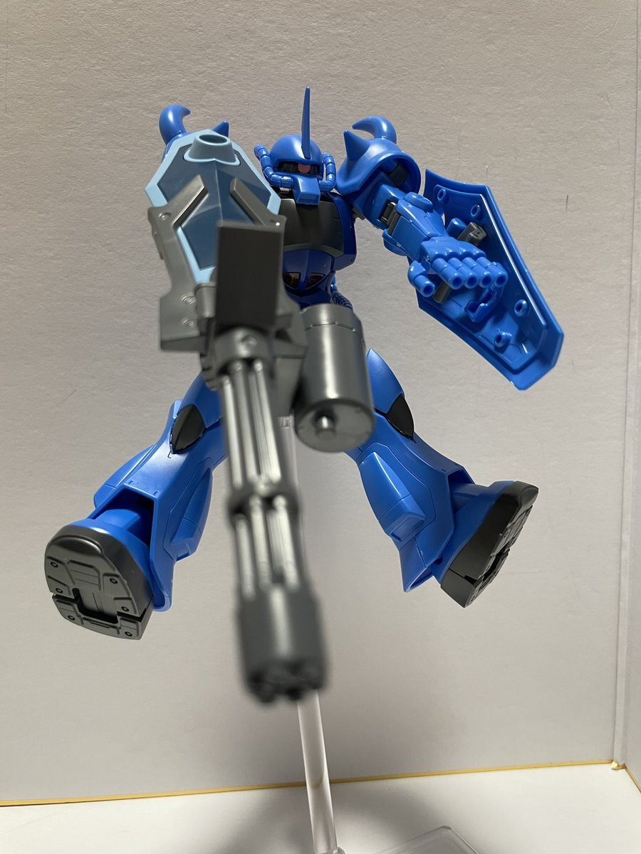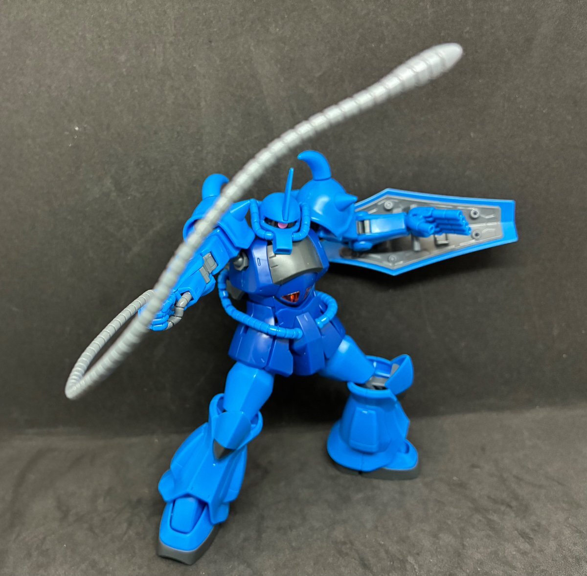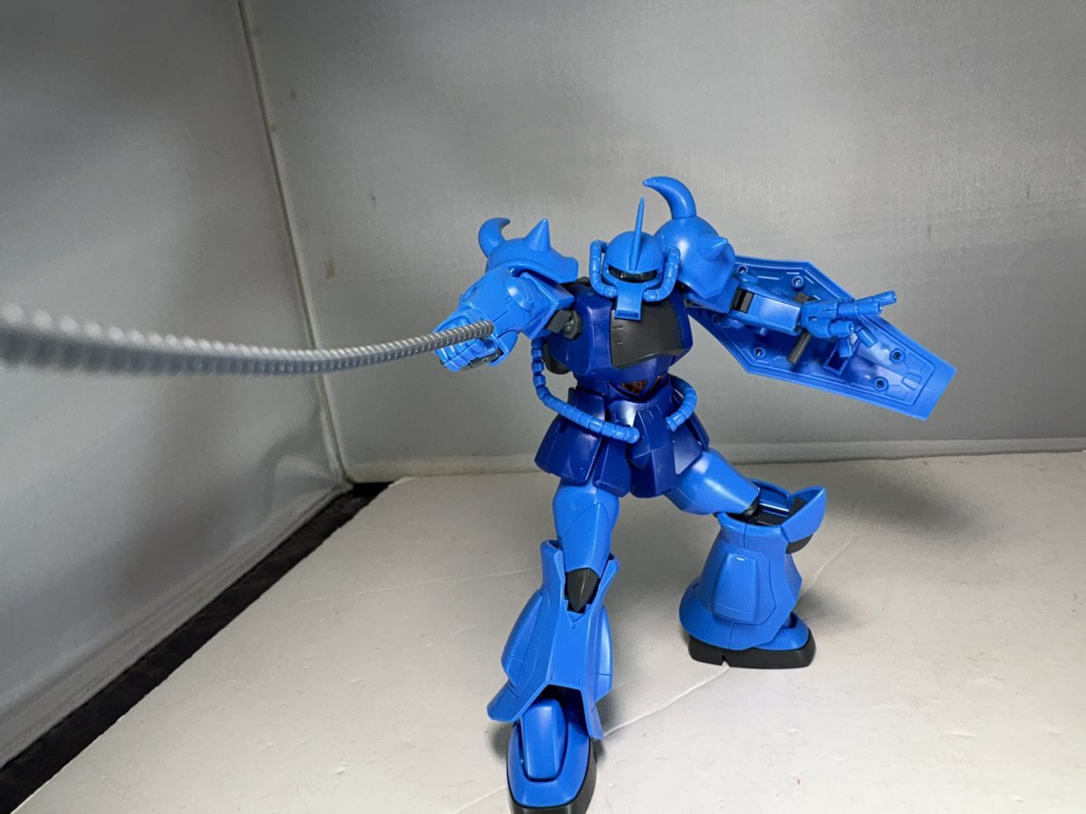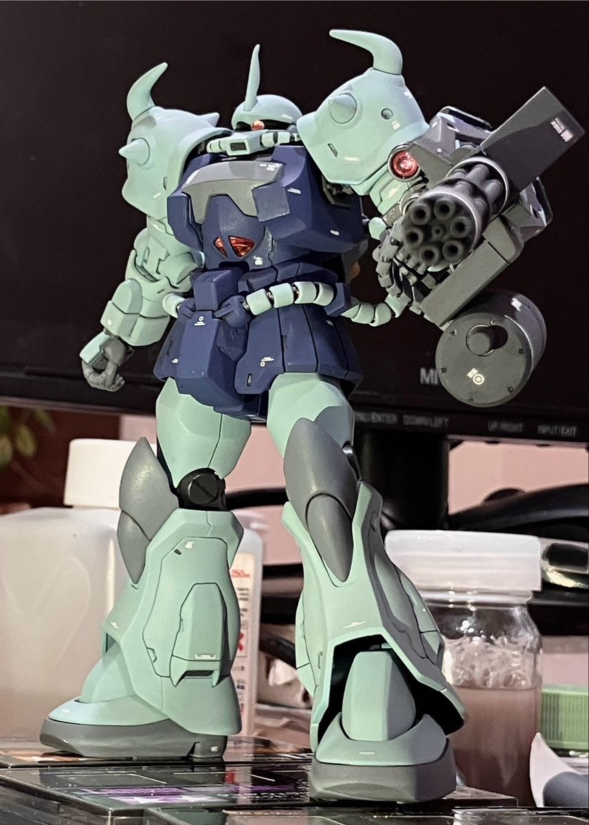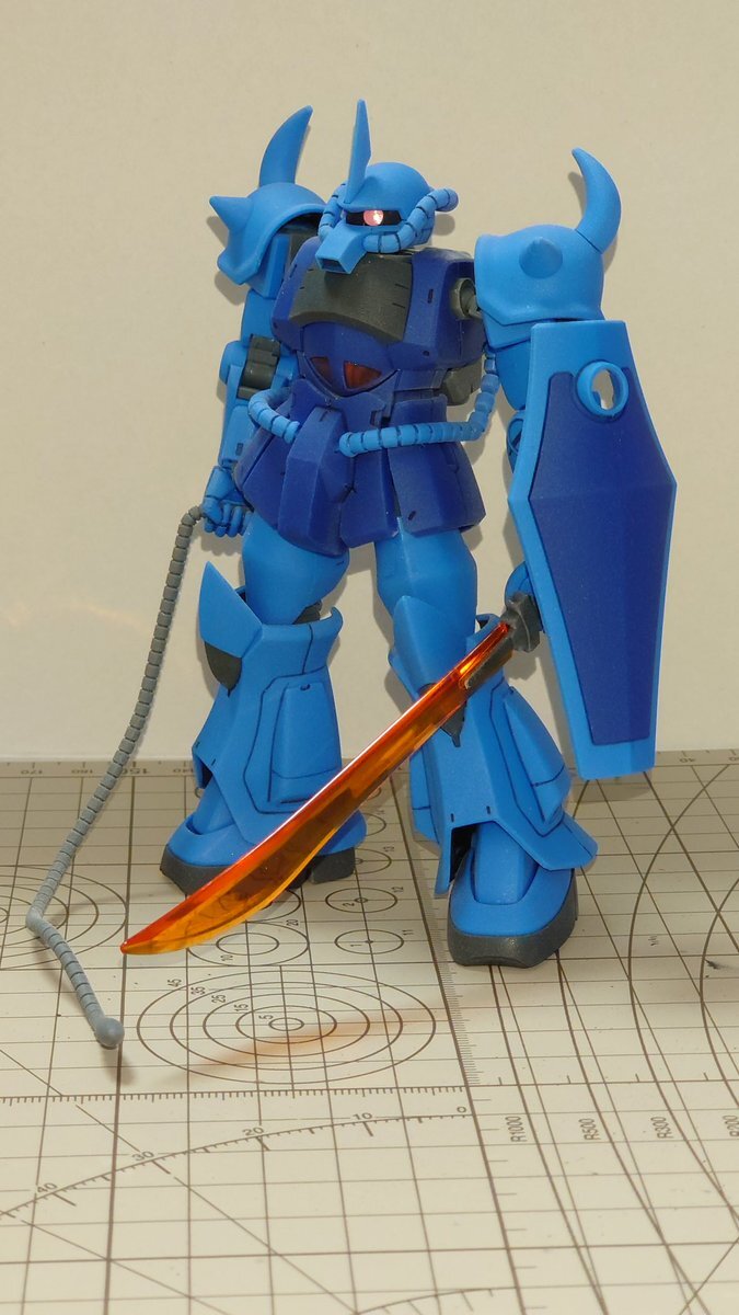 遅刻したけど... グフでウェザリングの練習させてもらったなぁ(´ᴗ ·̫ ᴗ`) この子ツノも、盾も、モノアイもついて丸みあるから、色々やってみるのにめっちゃよかった。 #いいグフの日 pic.x.com/e7TRa6uDRI