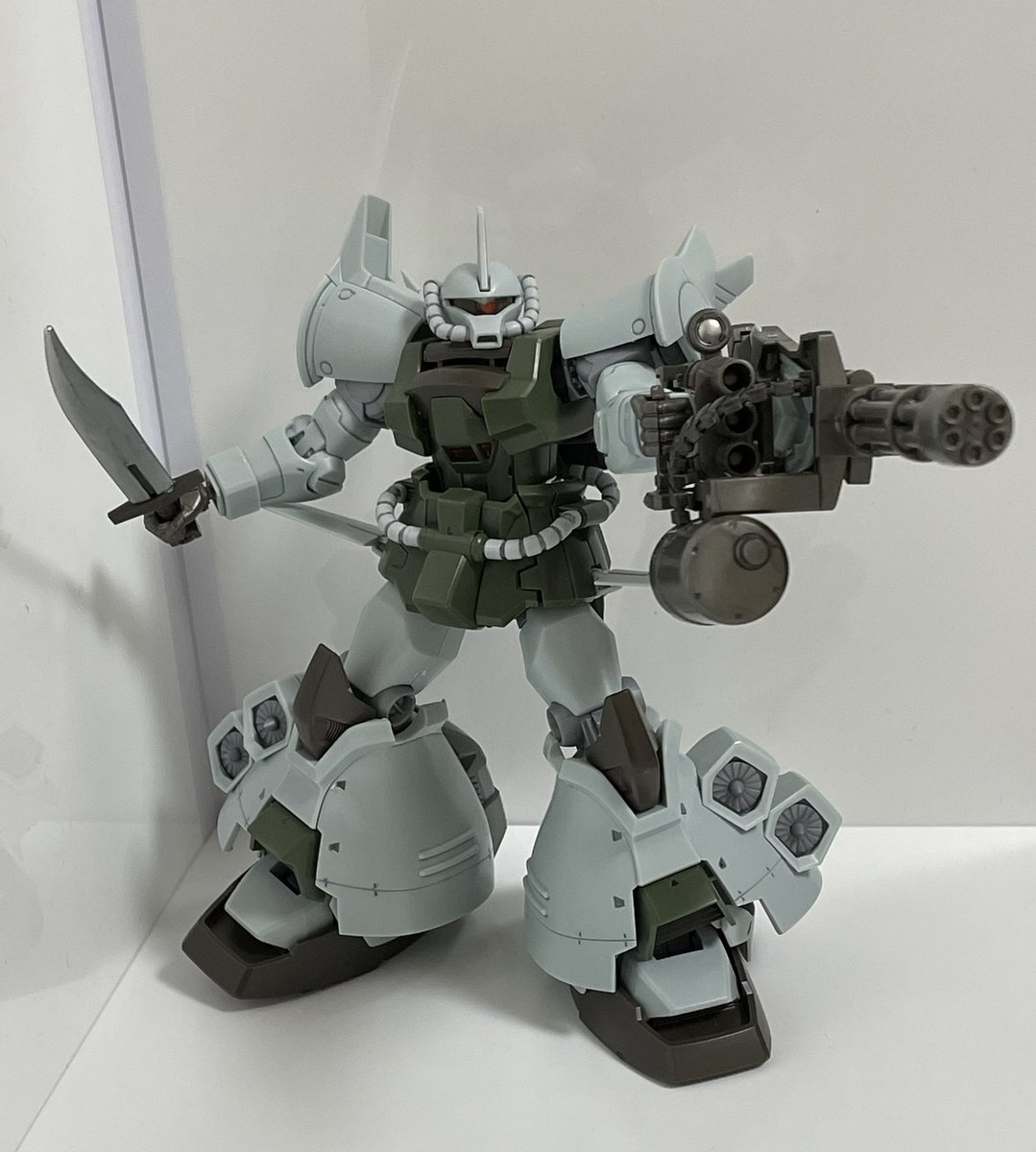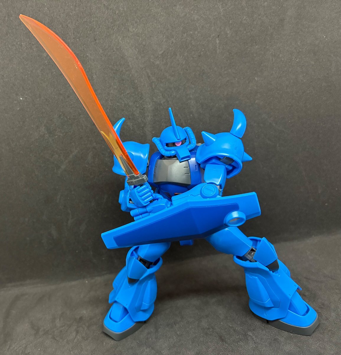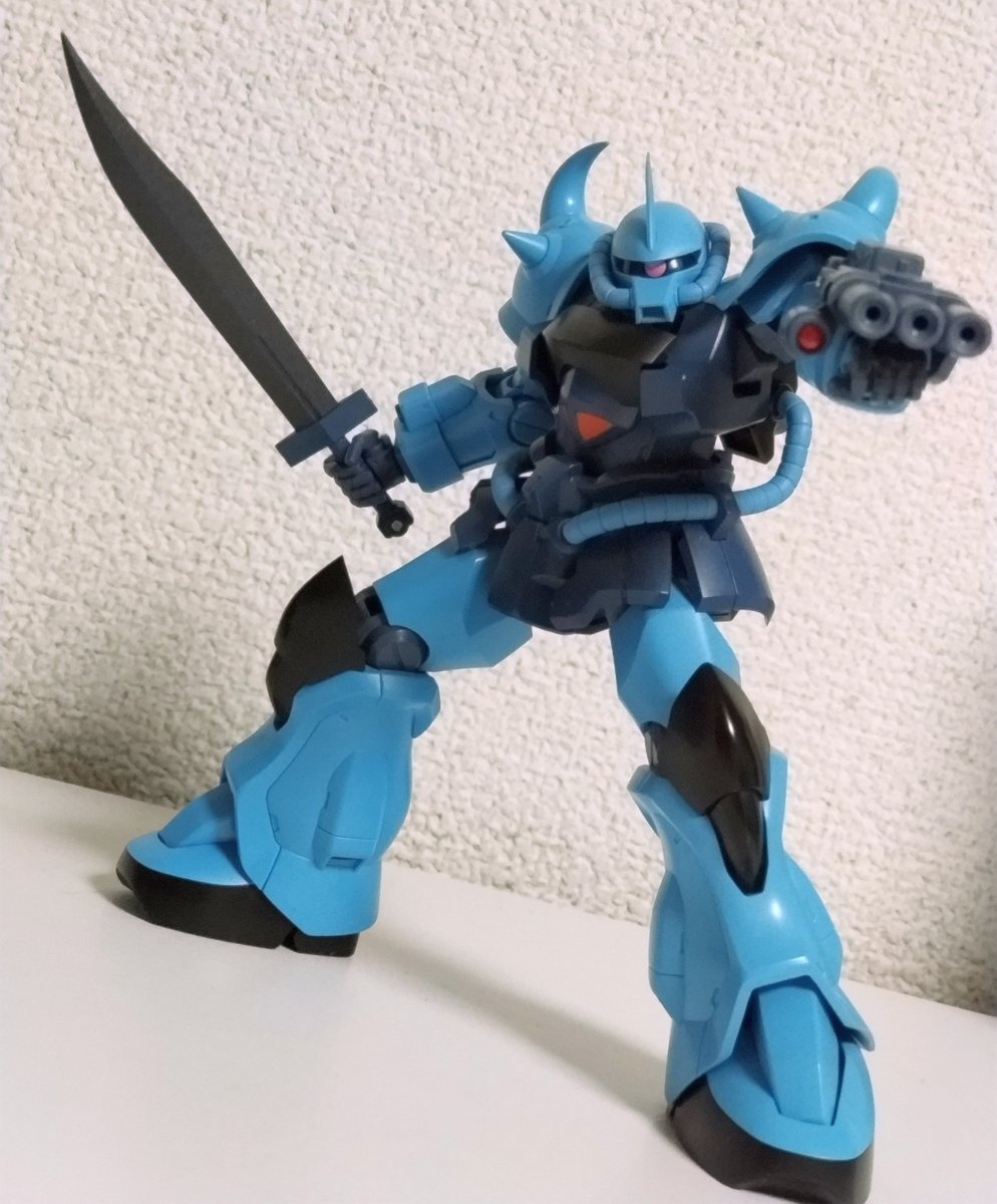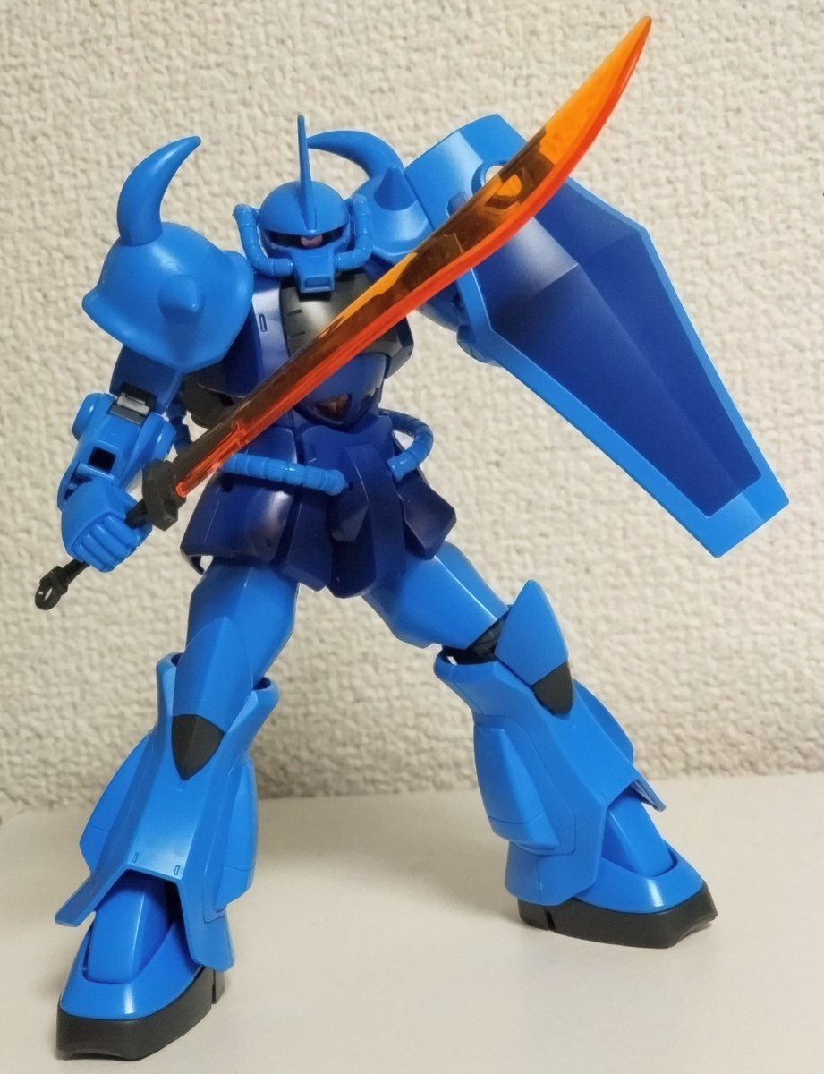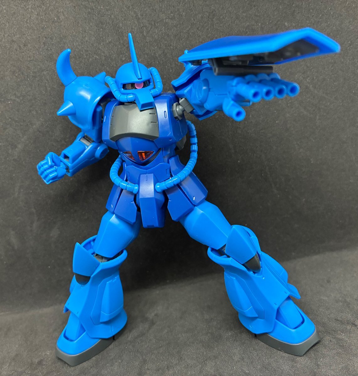 遅刻したけど... グフでウェザリングの練習させてもらったなぁ(´ᴗ ·̫ ᴗ`) この子ツノも、盾も、モノアイもついて丸みあるから、色々やってみるのにめっちゃよかった。 #いいグフの日 pic.x.com/e7TRa6uDRI