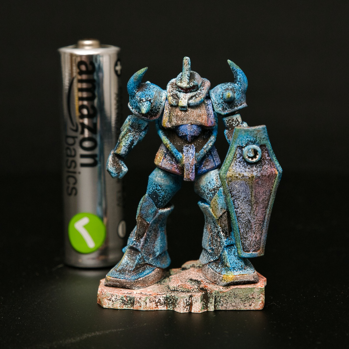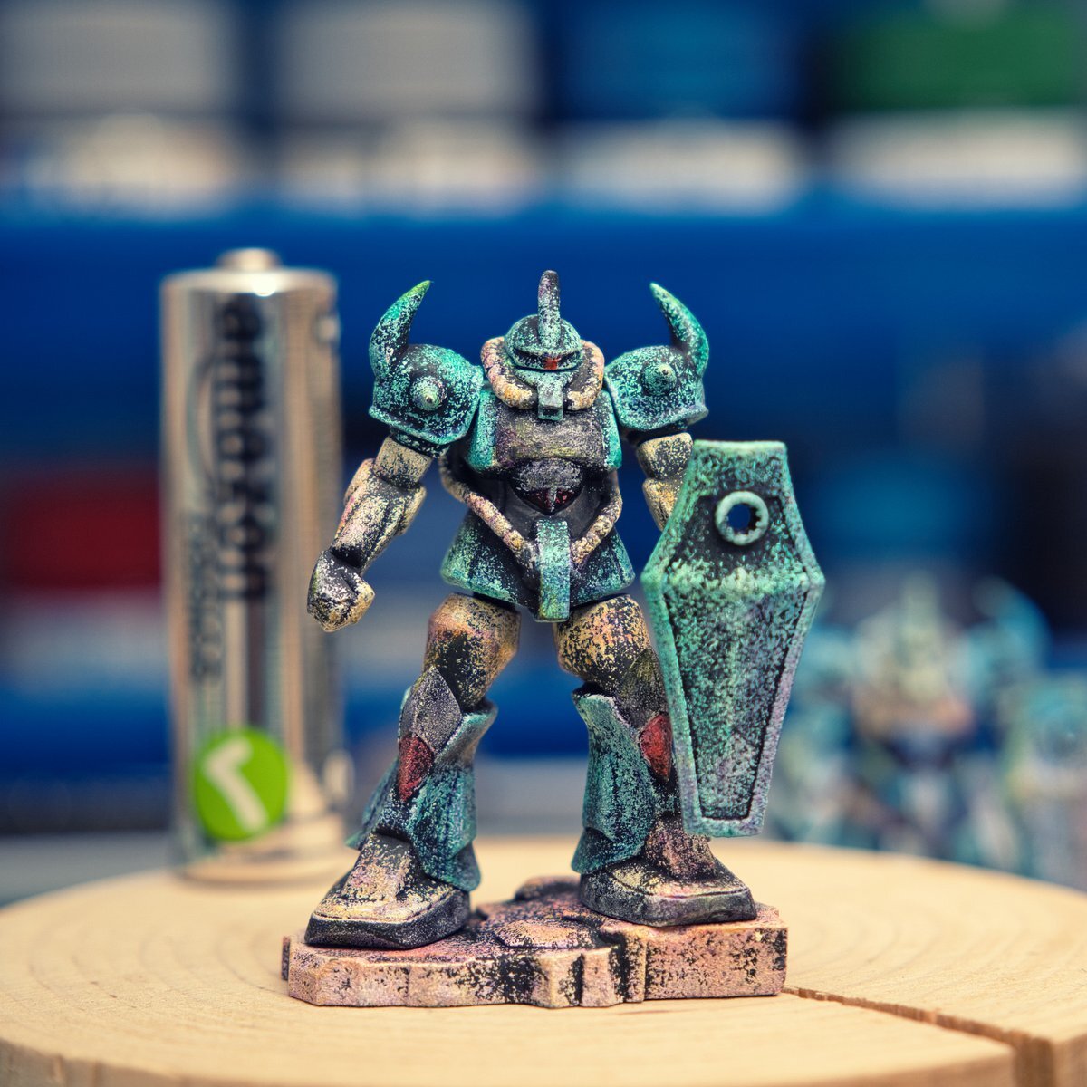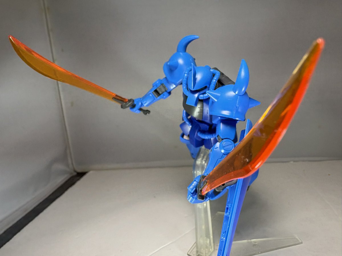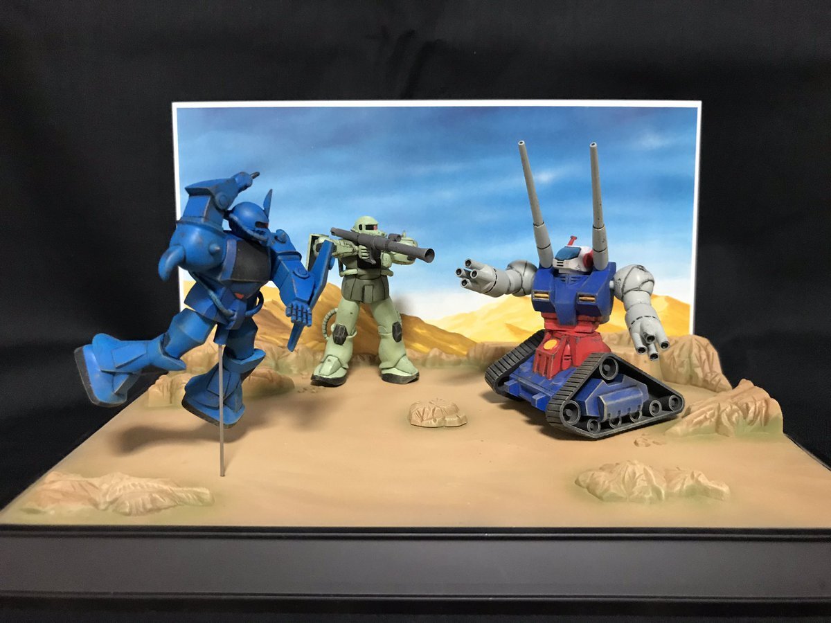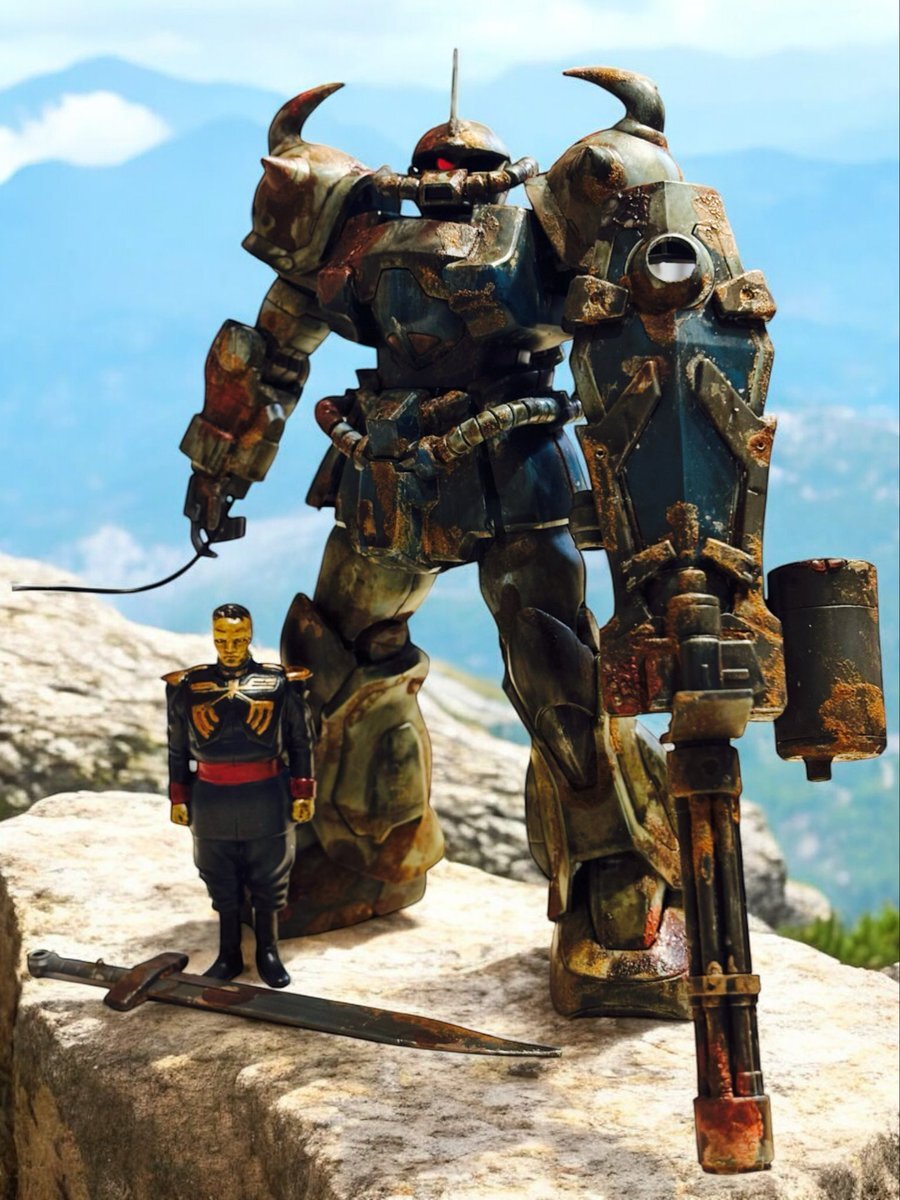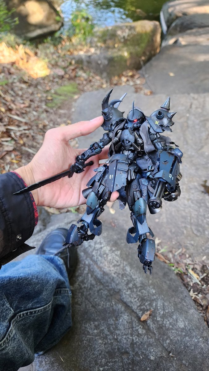 遅刻したけど... グフでウェザリングの練習させてもらったなぁ(´ᴗ ·̫ ᴗ`) この子ツノも、盾も、モノアイもついて丸みあるから、色々やってみるのにめっちゃよかった。 #いいグフの日 pic.x.com/e7TRa6uDRI