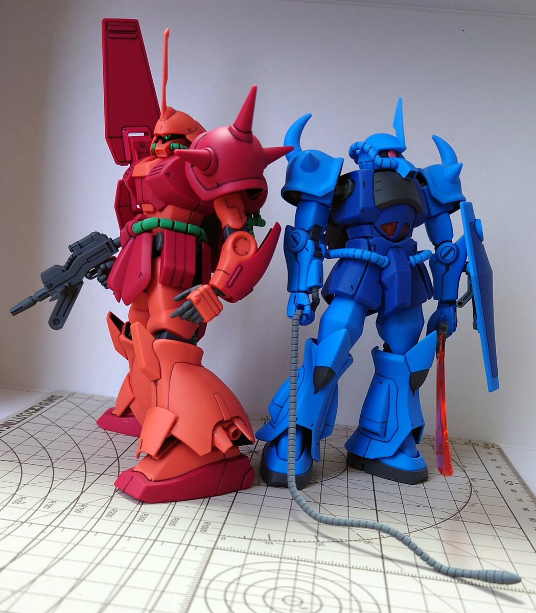 #いいグフの日 リバイブのグフ本当にいいガンプラよね。スタイルよし可動よし組みやすさよしと完璧。 もう一個積んでるのはジークアクスに出てきたシャア専用をイメージで組むのだ。 pic.x.com/o5XuqWJav5