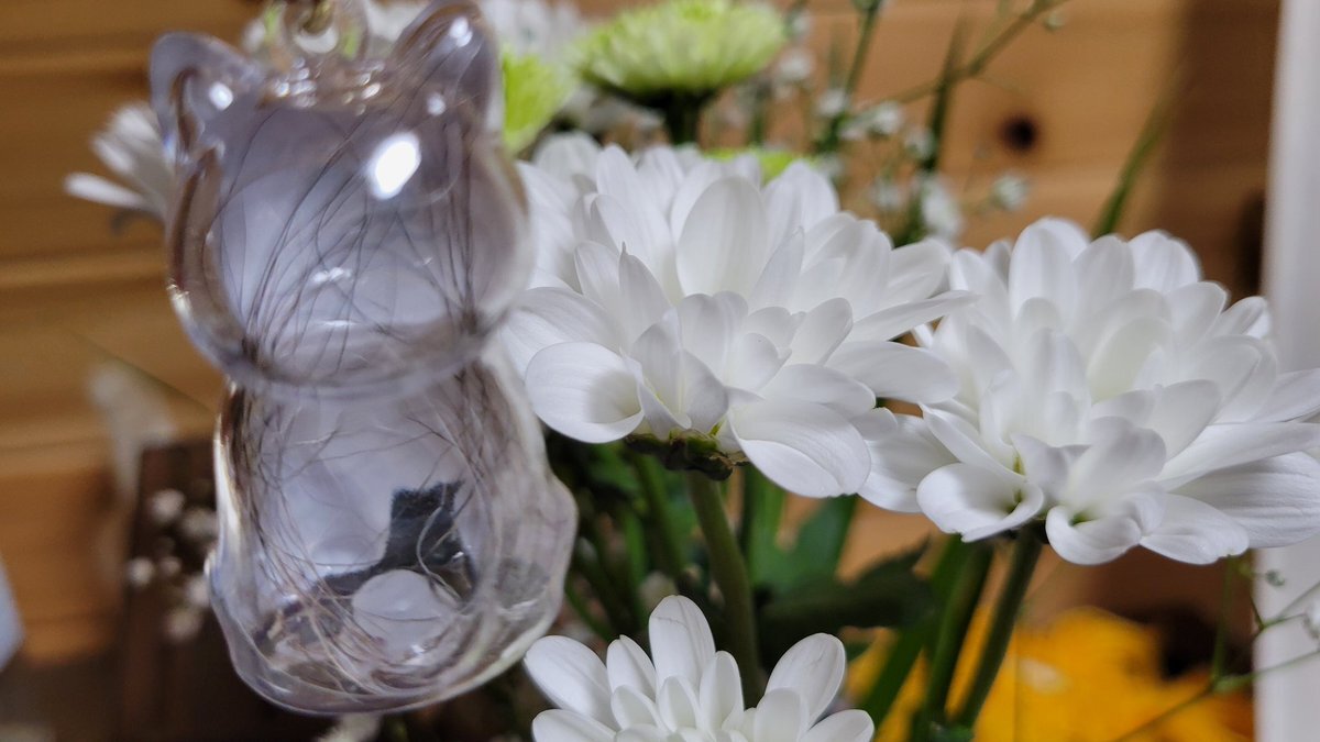 虎🐺🌈の月命日🪷 来月で、旅立って2年になってしまうんだ。 立ち耳を見つけたので、虎🐺🌈の毛を入れたよ😊 虎の毛色と違うので、後ろ向きで祭壇に 白いお花も可愛いでしょう🥰 #いいマムの日 pic.x.com/WRKlnasJxT
