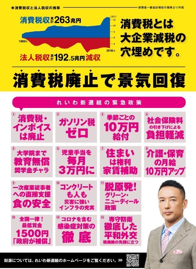 れいわが国会から消えたら自民党は今まで以上にやりたい放題するだろうし立憲、国民、維新、参政は2度と『消費税減税』を公約に入れないだろう 権力の固定化(独裁政治)を防ぐためにも絶対にれいわの火は消させない‼️ #れいわ新選組 #山本太郎 #議員定数削減反対 x.com/nh3aibrs1cwuak…