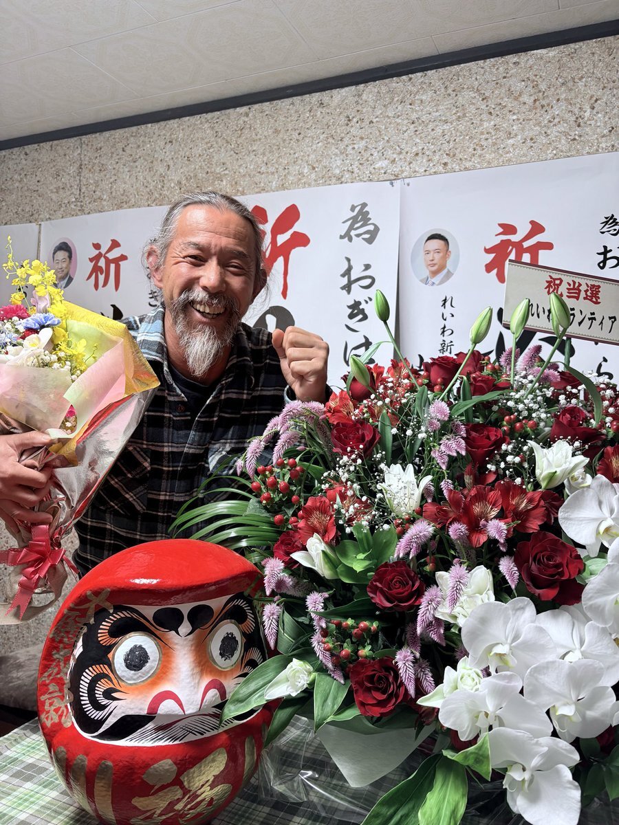 ありがとうございます!! この度の当選、皆さんから頂いた一票一票の積み重ね、 本当に皆さんのお力添えの賜物です。ありがとうございました🙇‍♂️🙇‍♂️ 大願成就‼️ 山梨県にれいわの旗が立ちました‼️😆 #おぎはら哲也 #れいわ新選組 #甲州市 #山梨県