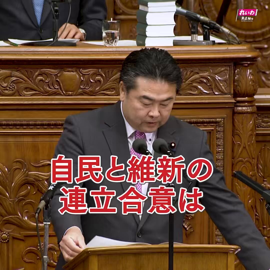 / 自民と維新の連立合意は、 支持率低下が著しい自民と維新が 延命するための悪魔合体です。 \ 国民の6割が生活が苦しいと答え、 年間1万社が倒産する中、 悠長に給付付き税額控除を 検討している場合ではありません。 イギリスでも実現に十数年かかり、 総理自身が制度設計に3年はかかると