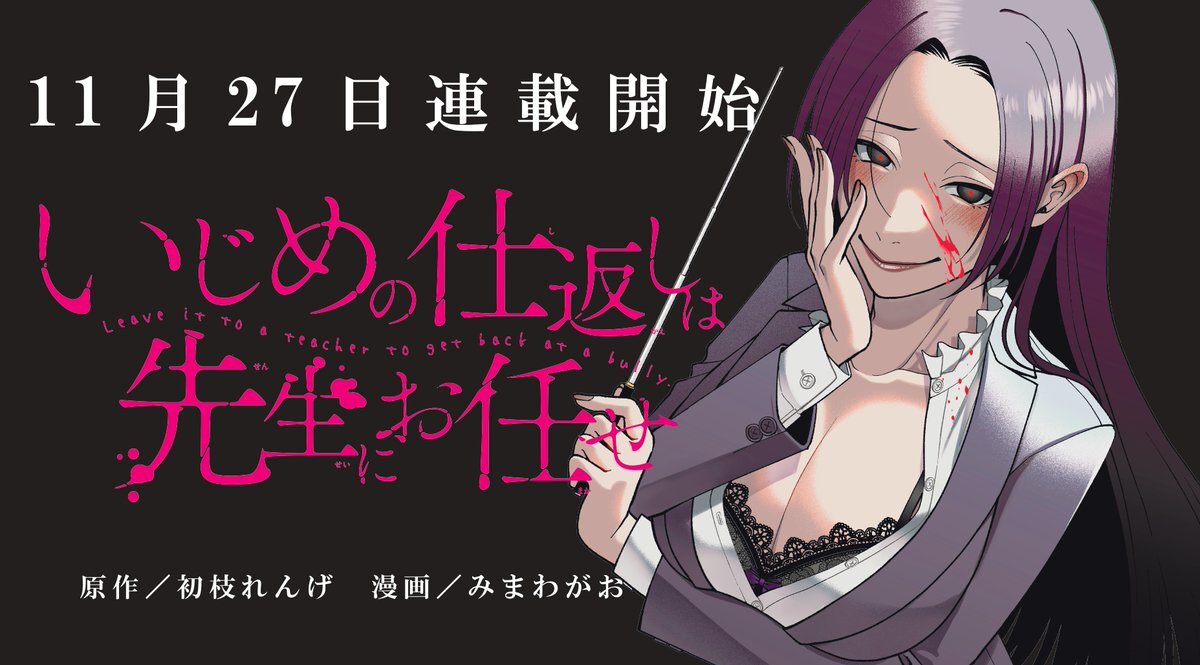 【🎉告知‼️】 コミック『いじめの仕返しは先生にお任せ』 ガンガンONLINEで11月27日より連載開始します🌸(アプリ版先行) 今回、原作をつとめさせて頂きました‼️ みまわがお先生(@mimawa_gao)に素敵な作品に仕上げて頂いてます😊 ぜひ読んでみてくださいね🙇💦 #いじめの仕返しは先生にお任せ pic.x.com/xkfoS7b1XF
