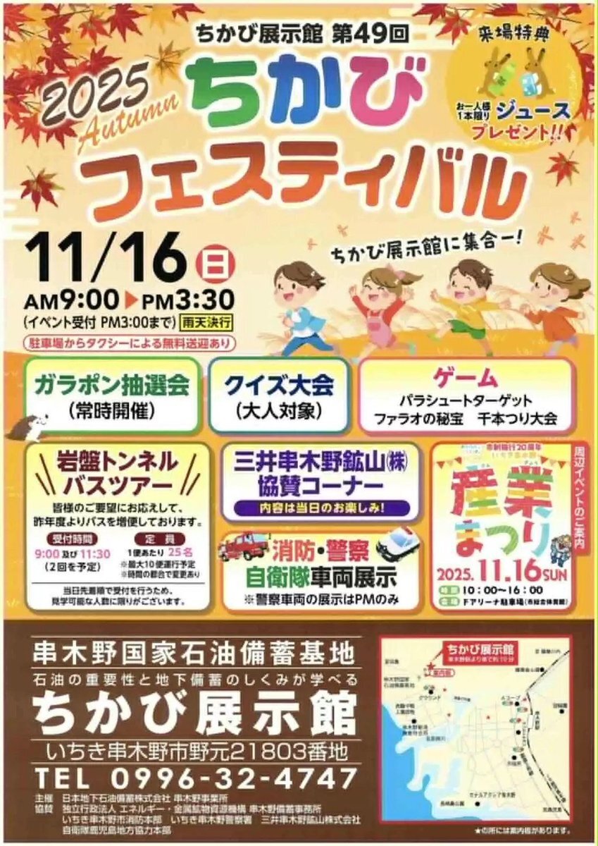 「ちかびフェスティバル」が開催されます! 日時: 令和7年11月16日(日曜日)9時~15時30分 場所: ちかび展示館(野元21803) 消防車両の展示も行います。 お友達やご家族と一緒にぜひお越しください! #いちき串木野市 #消防 #フェスティバル pic.x.com/FsF49mz0rI