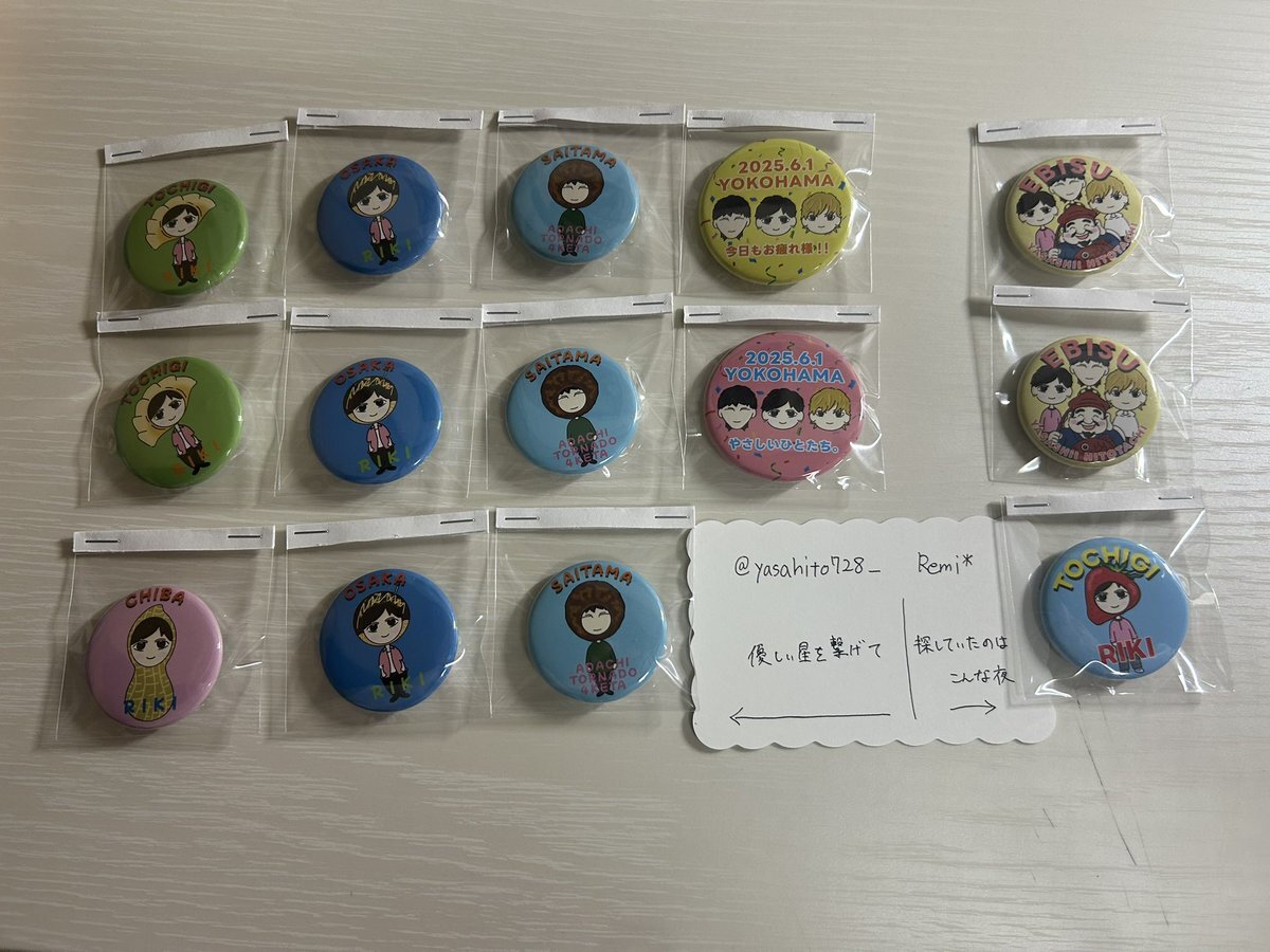【交換】やさしいひとたち。 探していたのは、こんな夜 ご当地限定缶バッジ 求⇒青森、京都、広島 (画像1枚目を参照) 譲⇒ 前ツアー分と今ツアー分 (画像2枚目を参照) 1⇔1で、お譲りできます🫡 交換できる方お願いします😭 #やさしいひとたち #いとしいひとたち pic.x.com/korh9GndMs