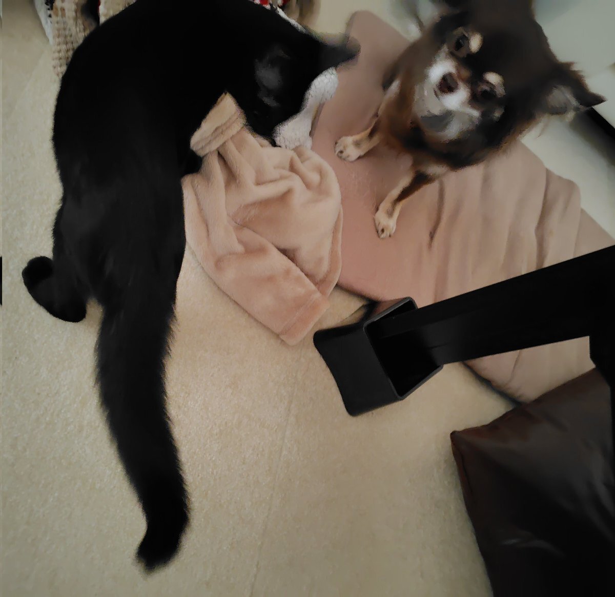 え?マフィでかくない😂 生後5ヶ月の2.4kgよ ちなタルトは4.4kg 遠近と太シッポで 目の錯覚なのかな #愛犬 #チワワ #愛猫 #ねこ #元繁殖犬 #いぬ #なかよし #いぬとの暮らし #多頭飼育 #ねことの暮らし #元野良猫 pic.x.com/ozb3wobzBJ