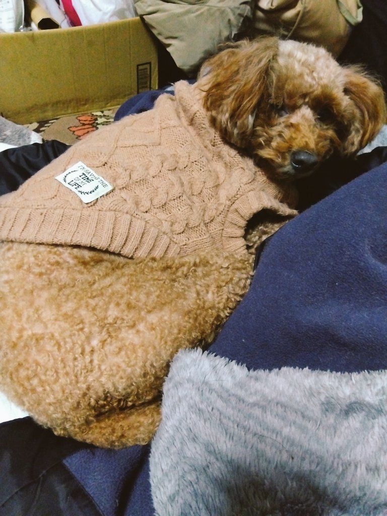 気温低下で犬も冷え気味🐶 モコモコ着て暖かくしよう🐑 #いぬとの暮らし #雑種犬 pic.x.com/w4wnSI6U8o