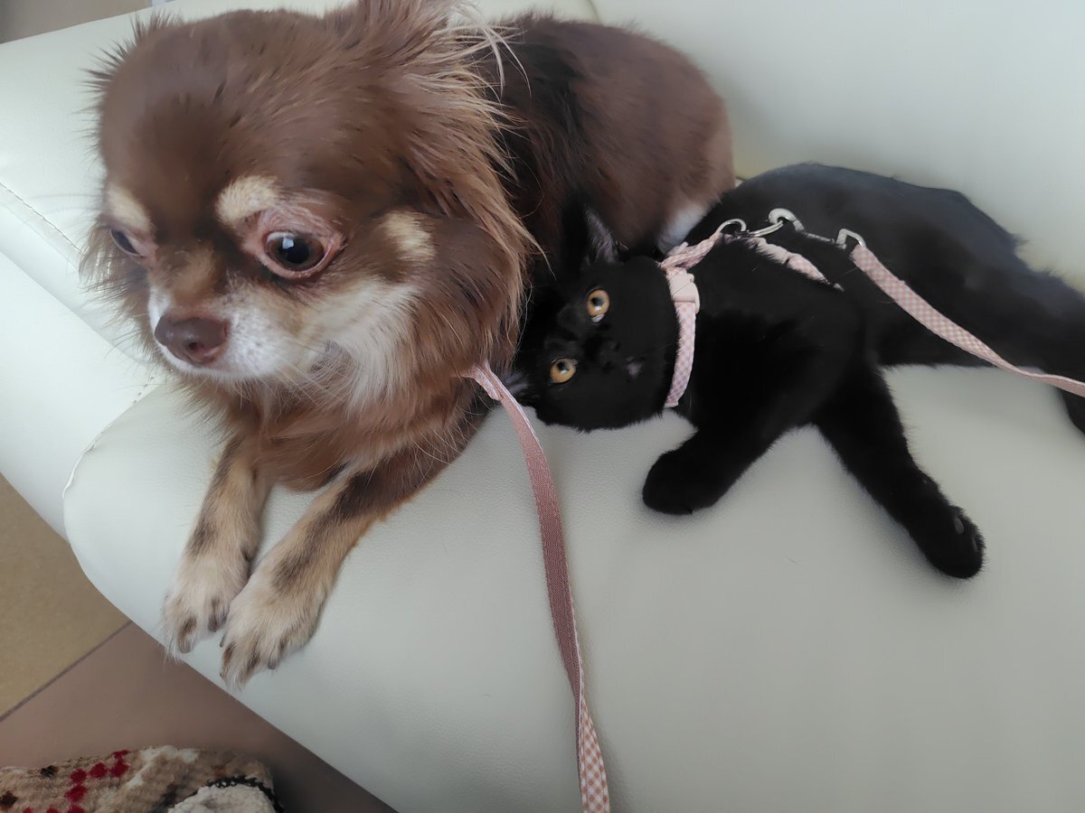 くっつけてみたら ビビリとヤンノカ😂 毎日戯れてるのに 仲良くないの?笑 #愛犬 #チワワ #愛猫 #ねこ #元繁殖犬 #いぬ #なかよし #いぬとの暮らし #多頭飼育 #ねことの暮らし #元野良猫 pic.x.com/rPVPYo2Prv