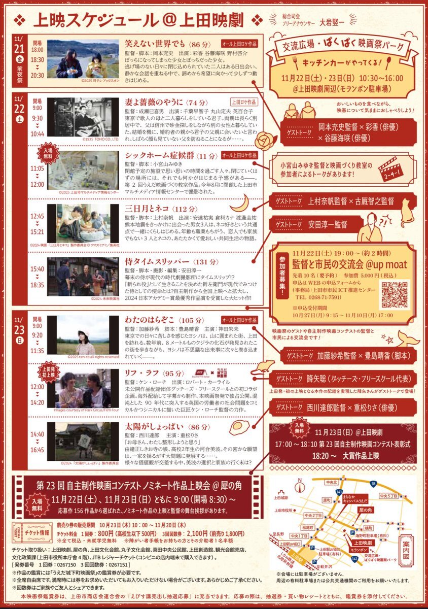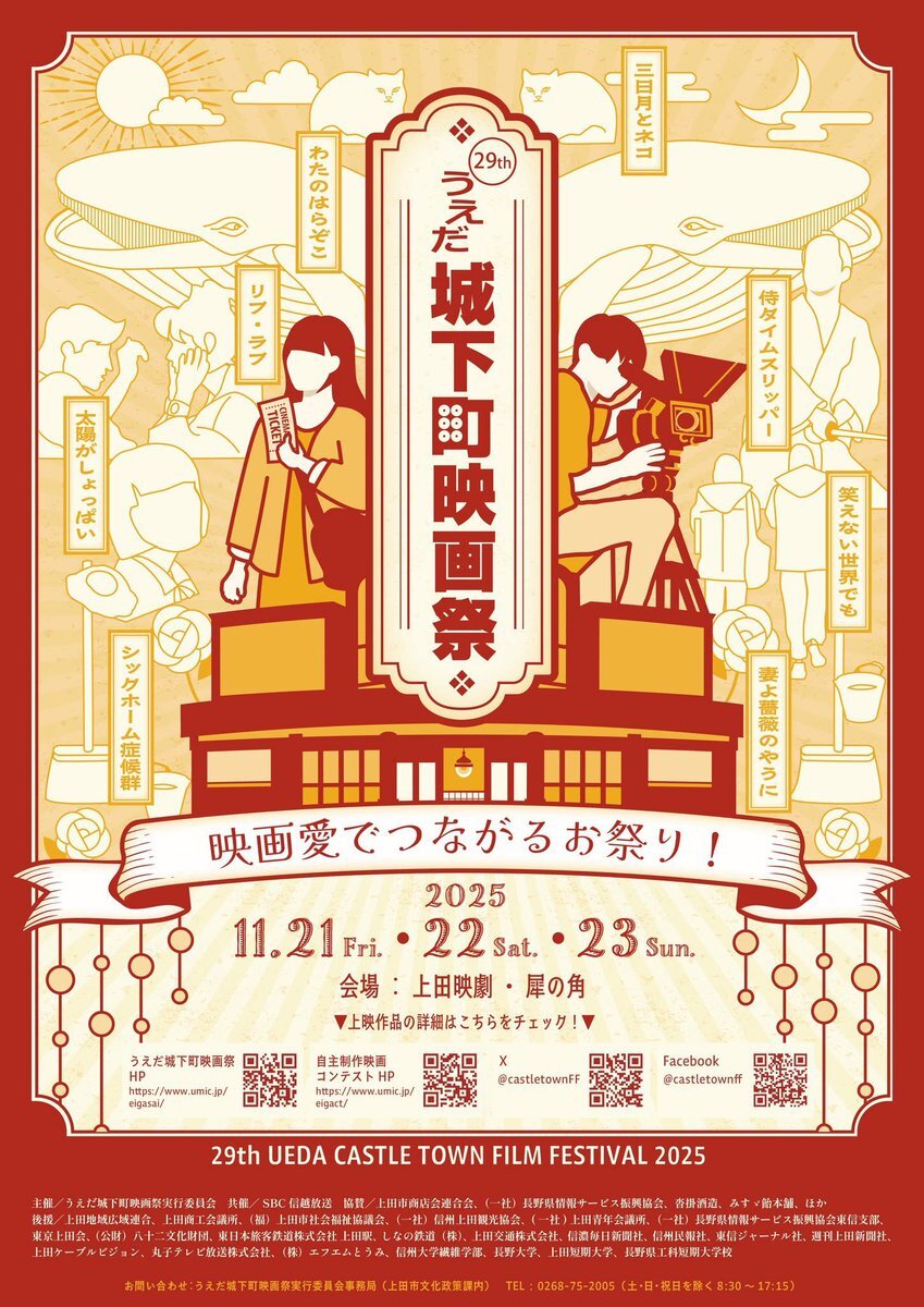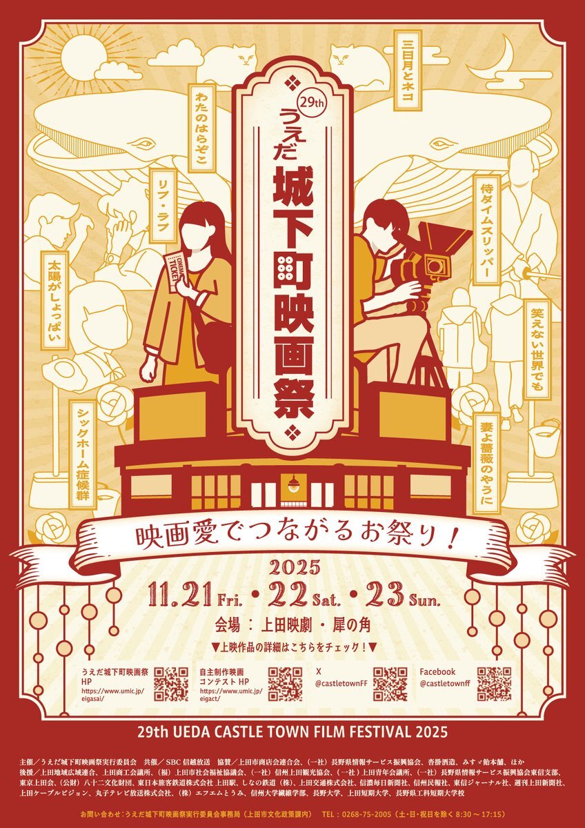 第29回うえだ城下町映画祭🎥✨ 前売り券は11月20日(木)まで上田市観光会館売店でも販売中🎫 普段映画館に足を運ばない方にも、ぜひうえだ城下町映画祭にお越しいただき、素敵な時間を過ごしていただければと思います🥹 #うえだ城下町映画祭 #上田映劇 #犀の角 @castletownFF umic.jp/eigasai/index.… pic.x.com/gcMSmvOQqX