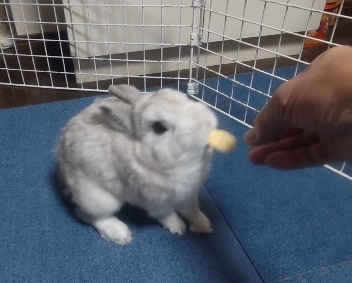 フリーズドライのバナナ🍌を食べるミミちゃん🐰早々に奪い取られたので…あまりトレーニングになってないかも…😅 #ネザーランドドワーフ #フリーズドライバナナ #後ろ足の筋力トレーニング #バナナを奪い取られる #高齢うさぎ #うさぎと暮らす #うさぎといる生活 pic.x.com/5sZ3qnkWjg