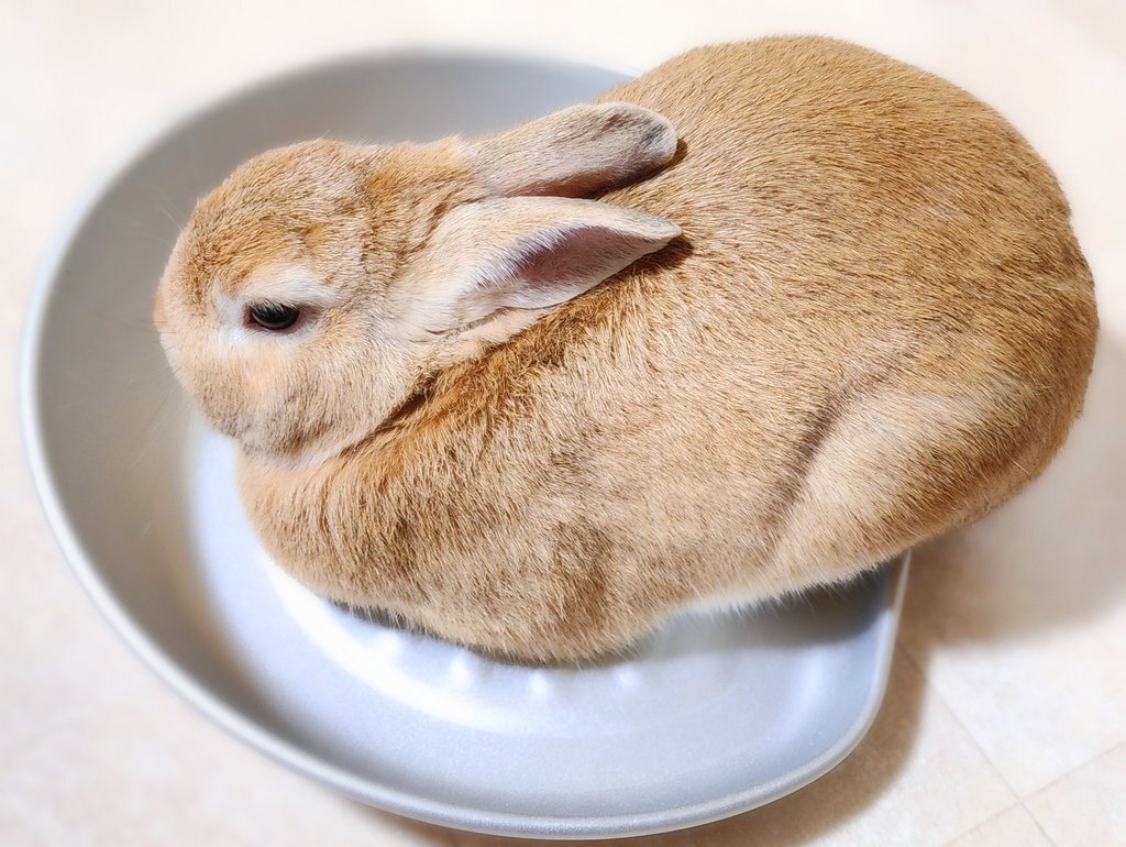 陶芸教室で作った大皿、料理には重すぎて不採用。でもおはぎの専用ラウンジに転生🐇猫みたいに丸くはならんけど、これはこれで尊い。 #うさぎのいる暮らし #うさぎの休憩所 pic.x.com/L1ppAfMVi8