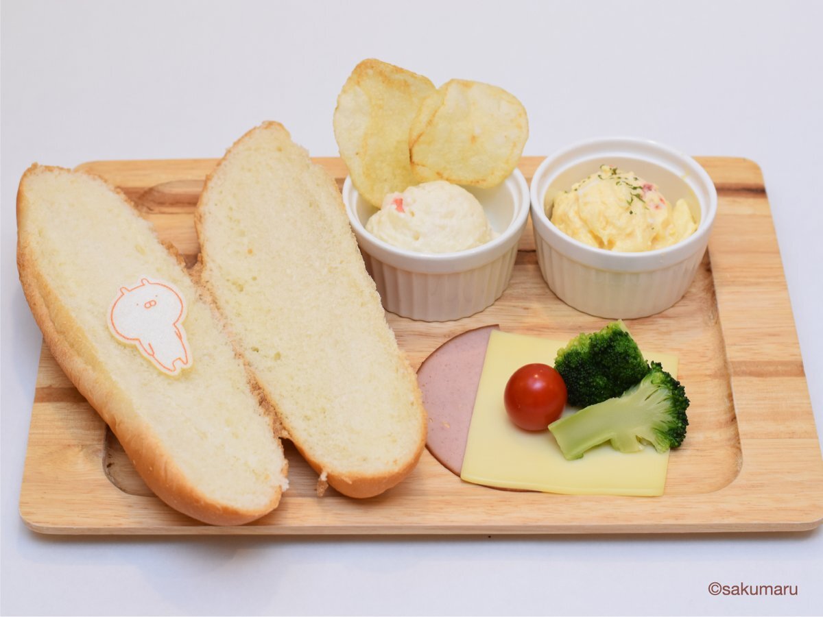 【#うさまる展 タイアップカフェ メニュー紹介】 コッペパンにはさまれたいうさまる 1.650円 具材は、たまごサラダ、ハム、チーズとうさまる。 うさまるを挟むとパンが可愛くなります‼️ ※アレルギー 乳・卵・小麦 詳細は↓ matsuyaginza.com/jp/ginza/event… pic.x.com/9j39SKcdB4