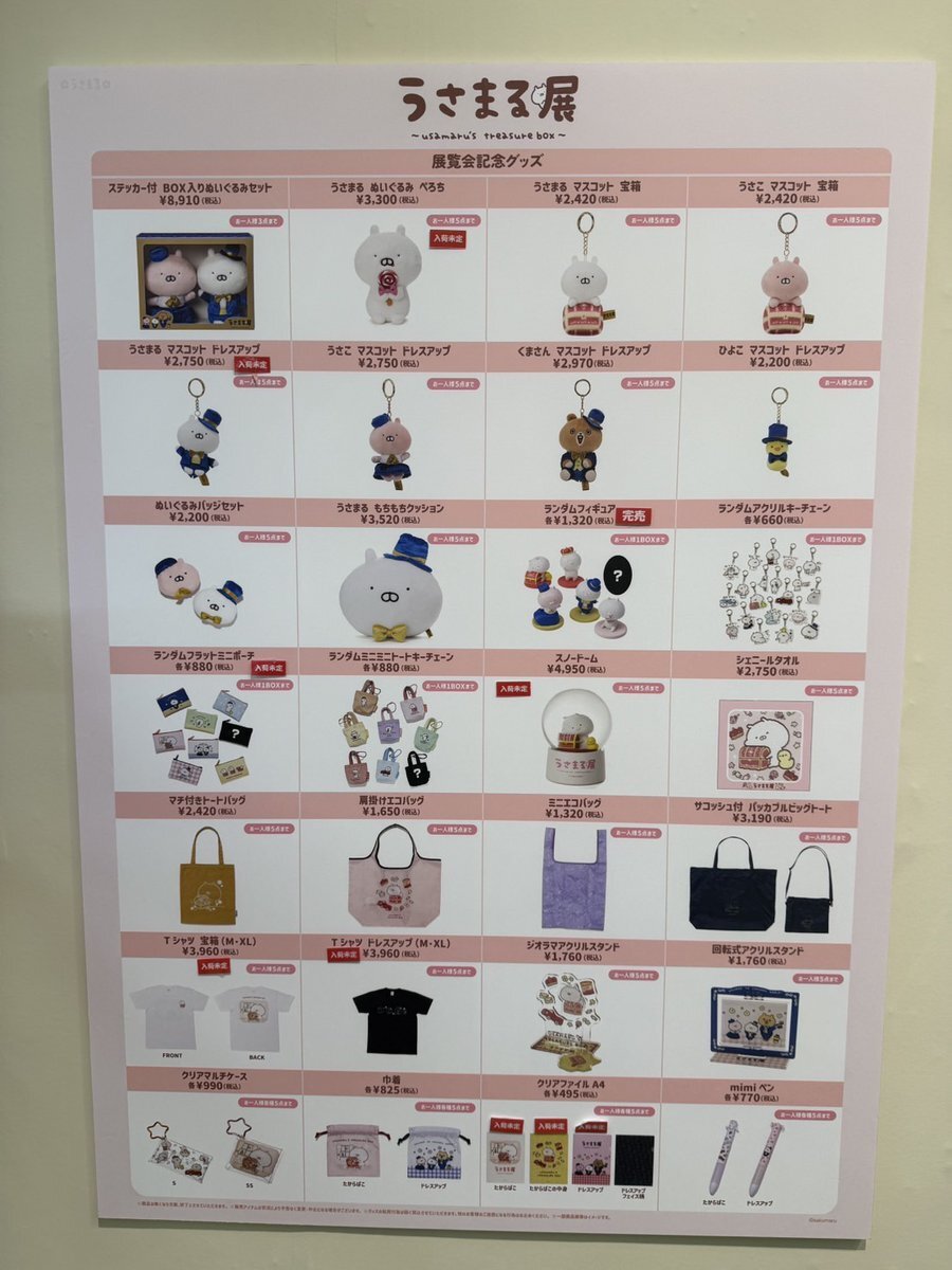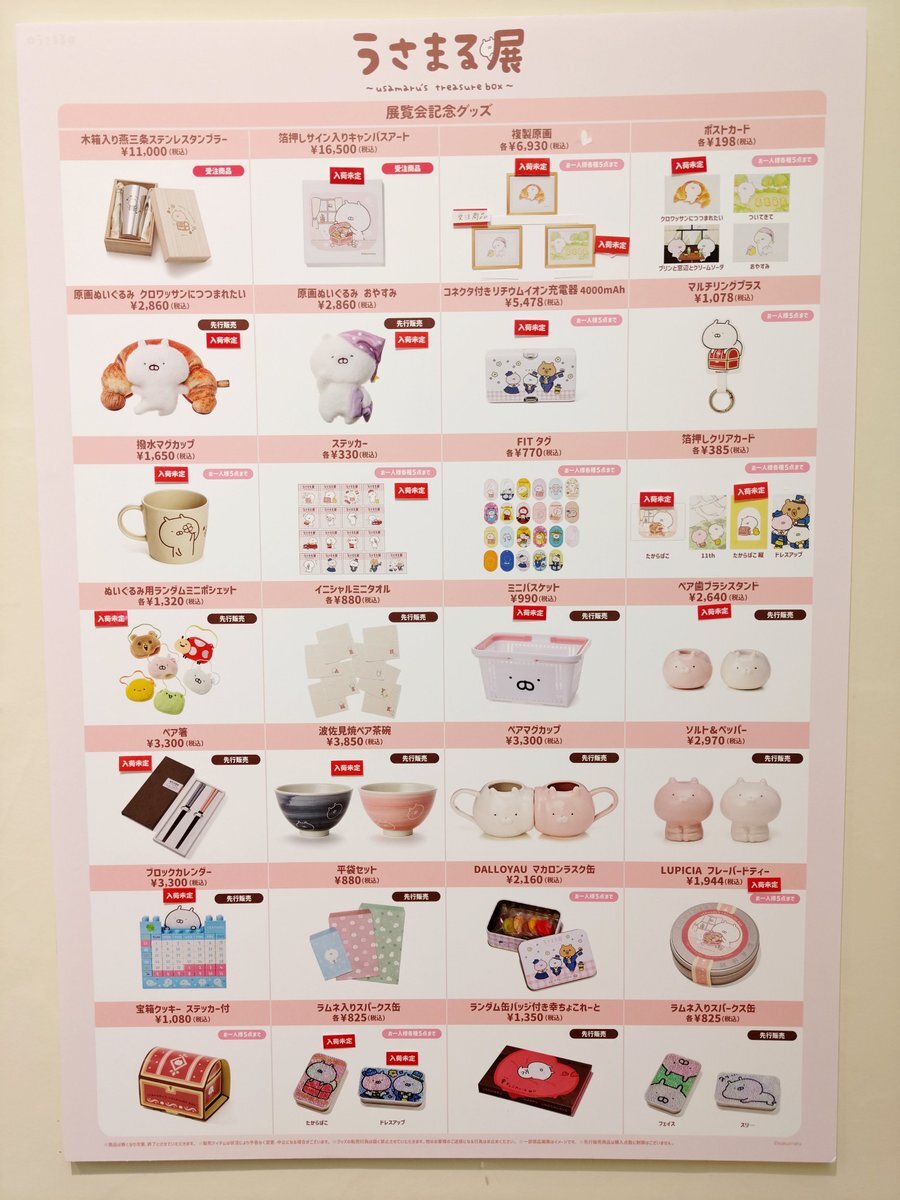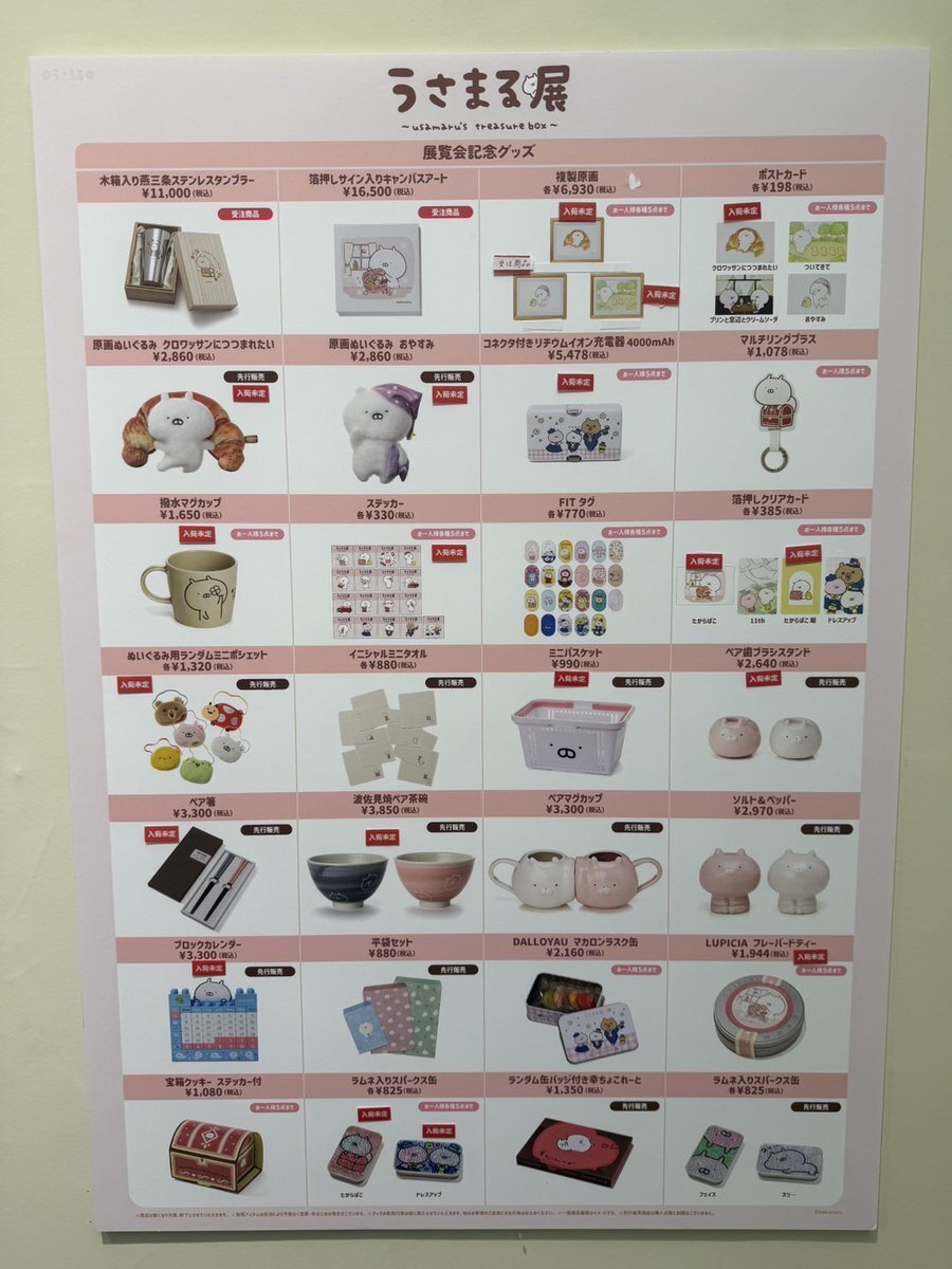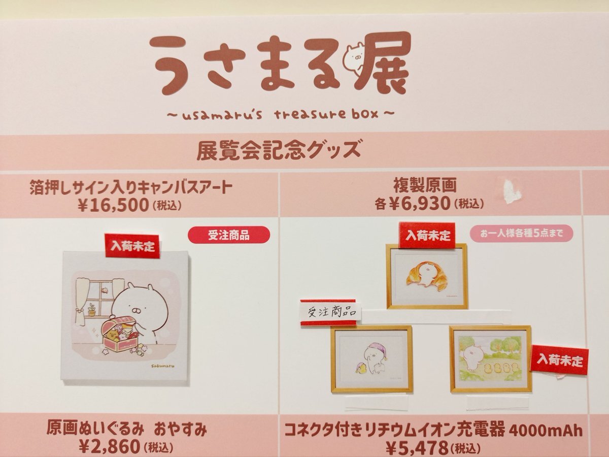 今日の #うさまる展 、初の週末を超えてだいぶ入荷未定が増えましたね(´・∞・`) 静岡や通販(まだやるかどうかわかりませんが)で買えると良いですが…。なお受注商品分が入荷未定になってるのは申込用紙が無くなったので一時的に止まってるだけとのことです😅 #うさまる pic.x.com/ORJ5Ahecai