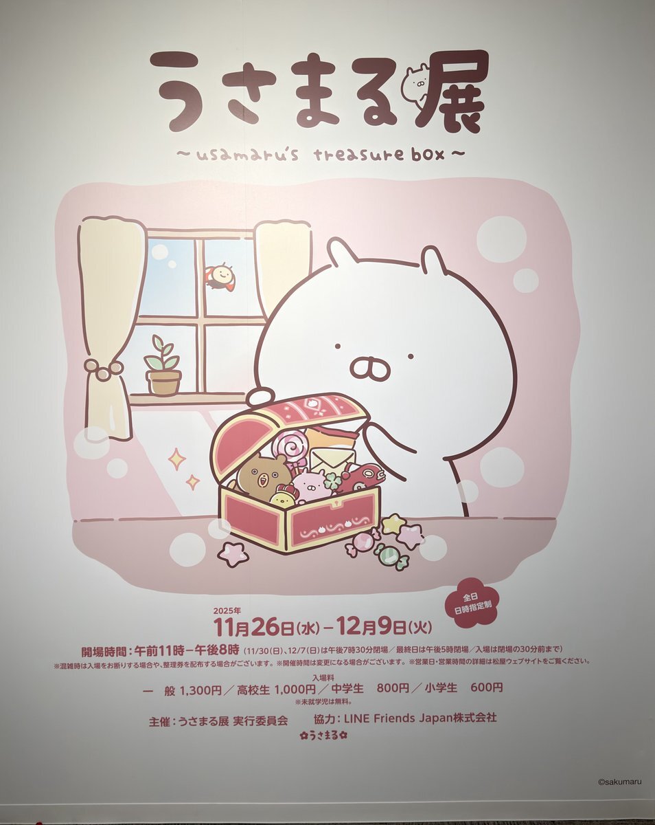〈12/1 当日券情報〉 本日は11:20以降 展覧会会場入口にて当日券の販売を予 定しております。 ※状況により変更になる場合がございます。 12/9(火)まで松屋銀座にて開催! usamaru-ten.com #うさまる展