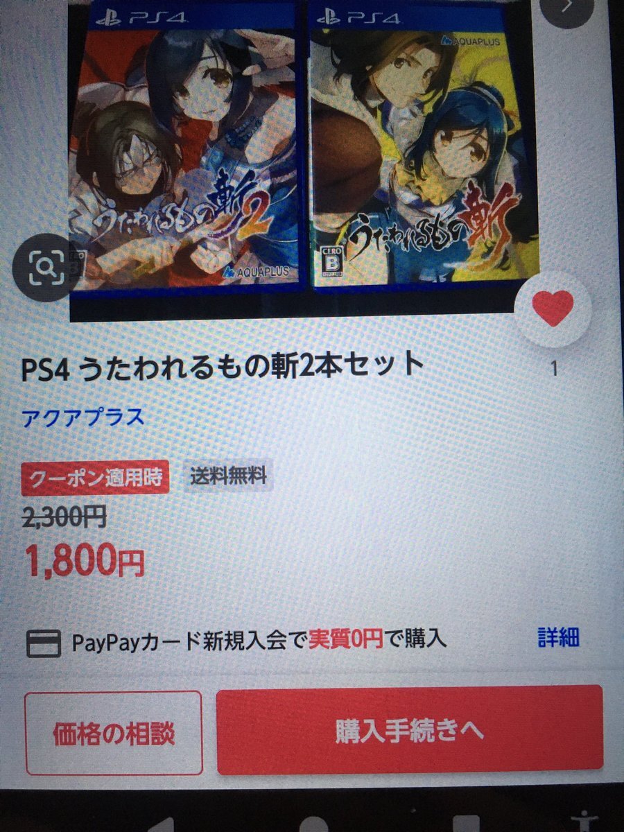 PS4の積みゲーがまた増えました ちょうどフレさんとオン共闘に良さそうと言っていたら狙ったかのように500円OFFクーポンが! うたわれるもの斬の1と2がセットで1800円ならお得だったと思います(^^) #うたわれるもの #うたわれるもの斬 #うたわれるもの斬2 #積みゲー #PS4 pic.x.com/3f2qdUoJbr