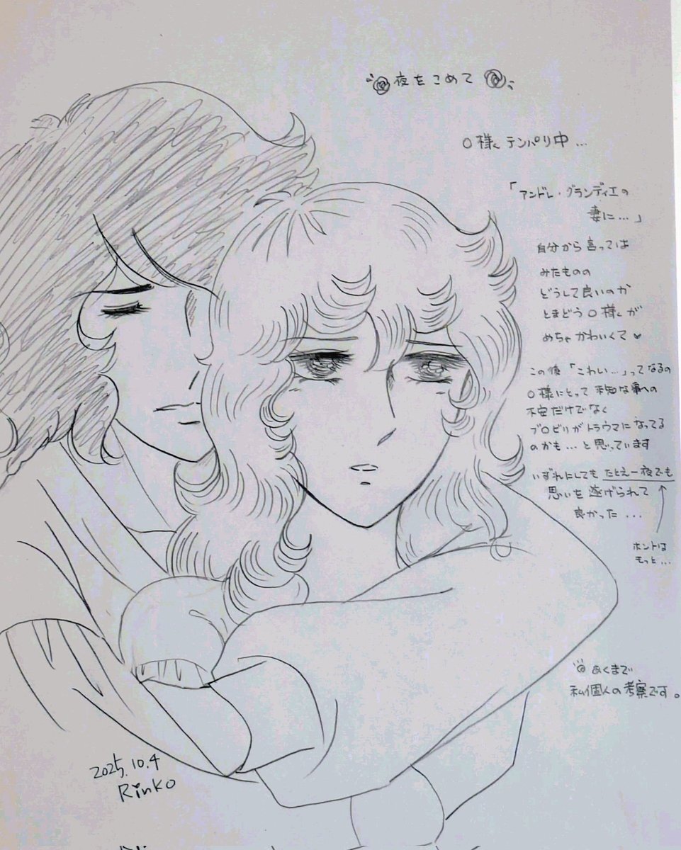 #ベルばら長編アニメ化希望 #上手いとか下手とかそういうのは関係なく自分が気に入っている絵 #うちのオスカルを見てくれ #うちのアンドレを見てくれ ✨🌹夜をこめて🌹✨ テンパり中(言い方)のO様可愛いなぁ…と描いてみました 相変わらず『♪唯一の夜をこめて』で泣きます😭😢😭 pic.x.com/40fzUhhQzk