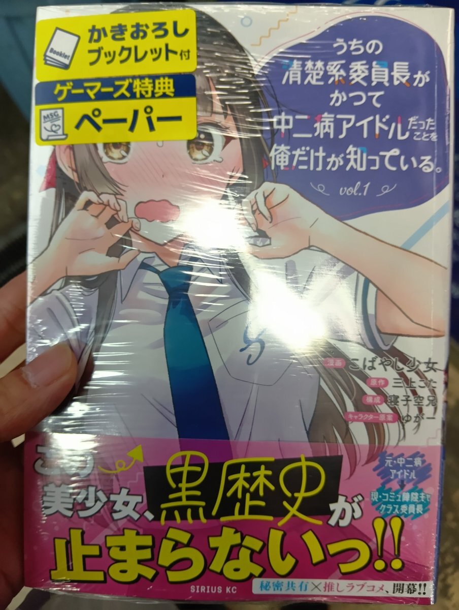 #うちの清楚系委員長がかつて中二病アイドルだったことを俺だけが知っている。 1巻本日入荷‼️ #こばやし少女 #三上こた #寝子空兄 #ゆがー 特典ペーパー付です✨ x.com/shonen_sirius/…