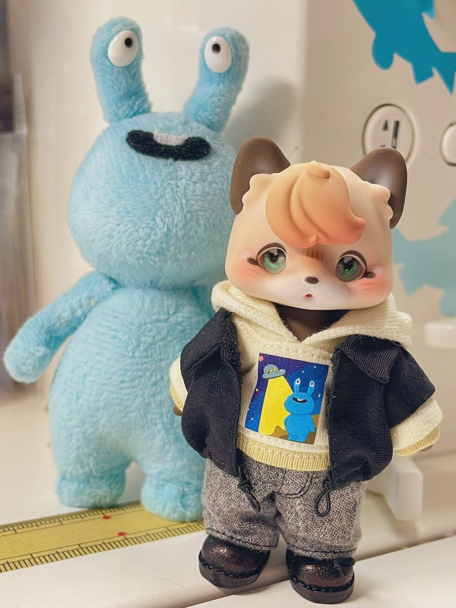 未知との遭遇 ●ッキーみたいな感じw 憧れのアイドル、うちゅうしんさんのパーカー着て一緒に撮影📷☺️ #うちゅうじんさんぬい #thevoyageofatwinklingnight #thevoyageofatwinklingnight_kumukuku #kumukuku #kumukuku個展 #risubaco pic.x.com/0JgUWeEDqT