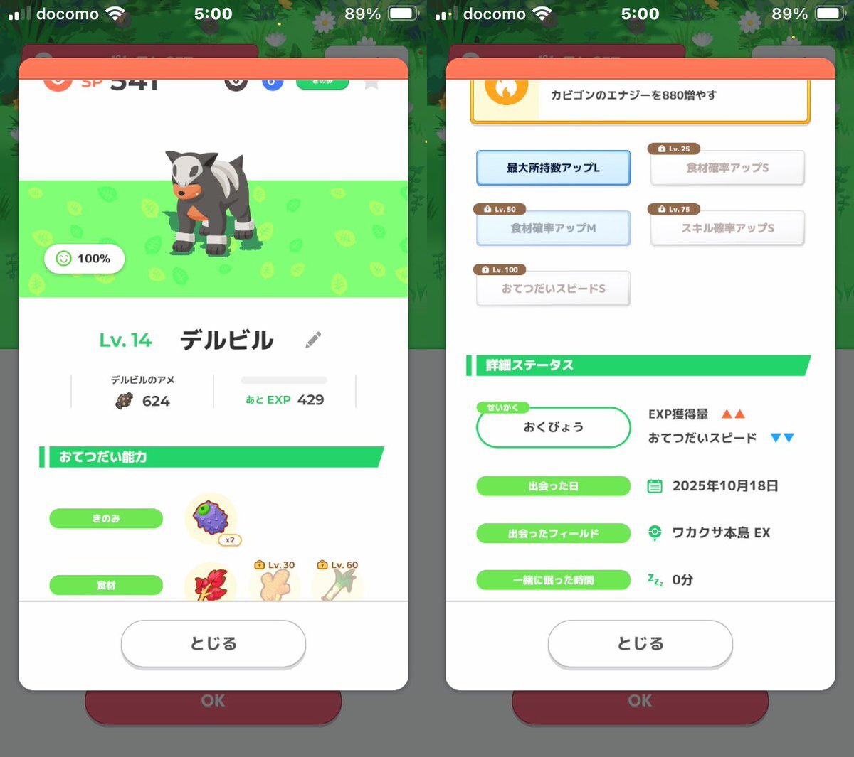 #ポケモンスリープ #うとうと おはようございます☀ デルビルちゃんは親子で キャタピーちゃんは兄弟でお目見え。 残りゲージ1つ残していた フシギダネちゃんをお迎えしました。 性格のてれや(無補正)は 良かったのですが ABCの食確なしの子でした。 pic.x.com/DHrCQdm0AT
