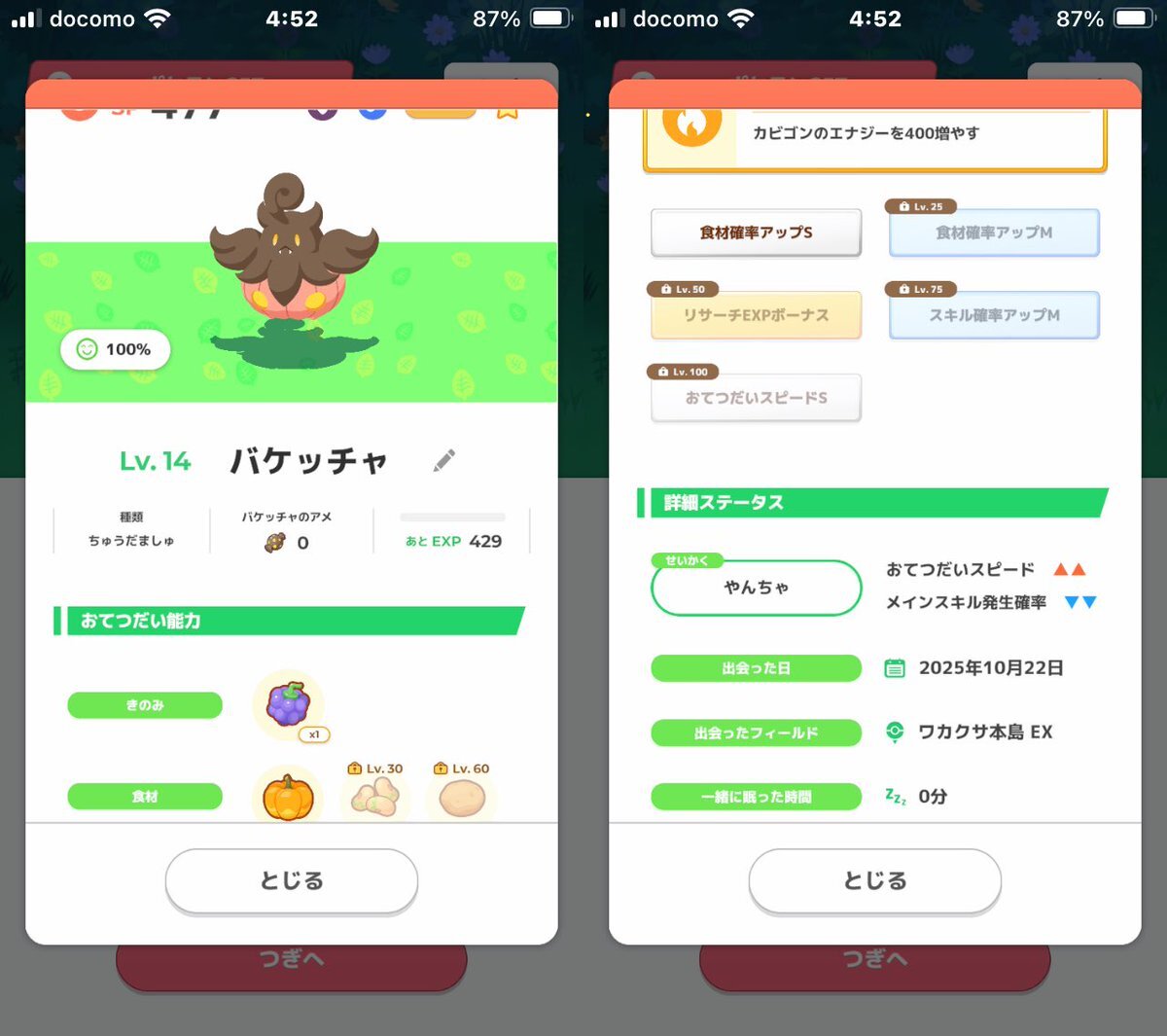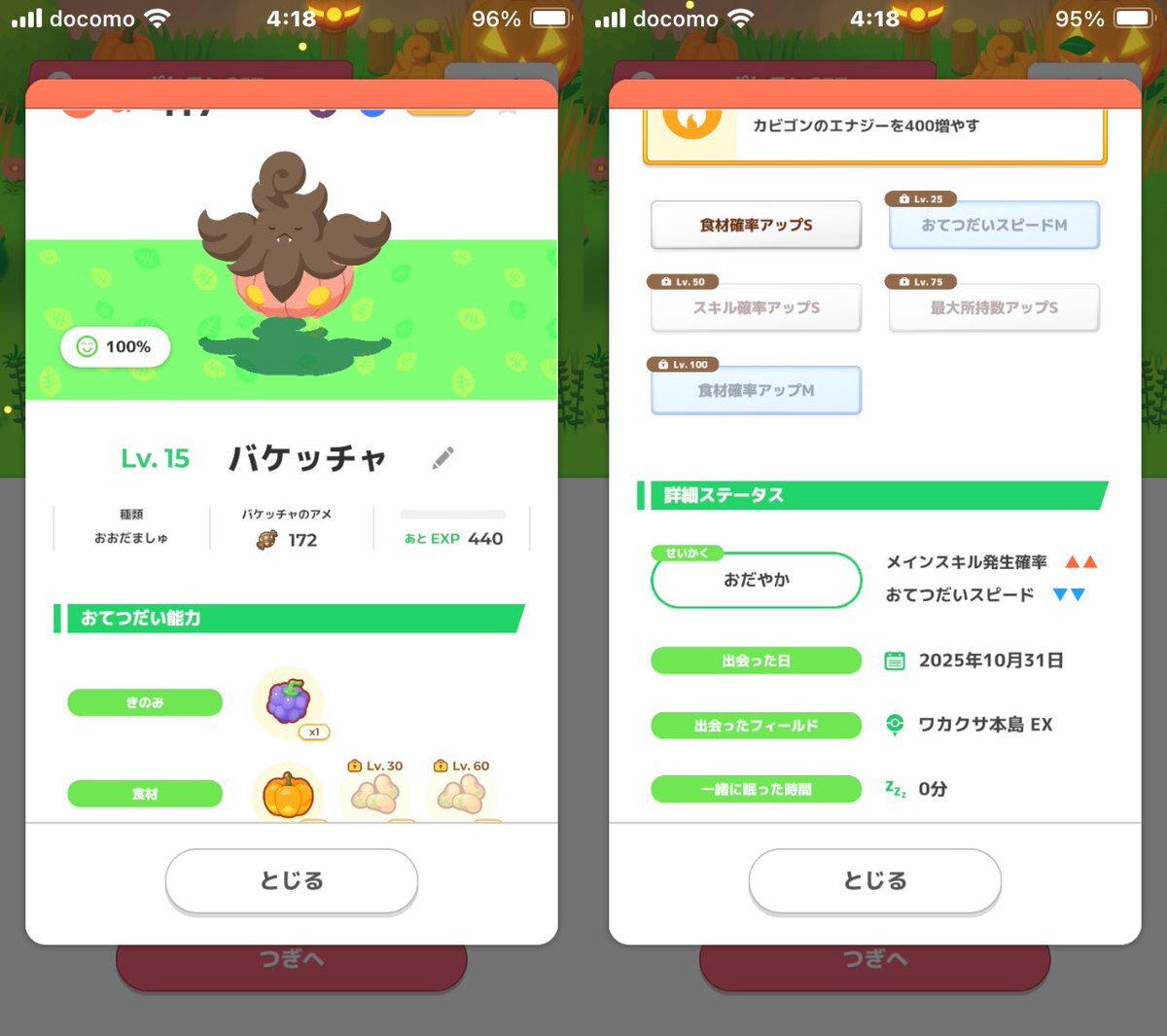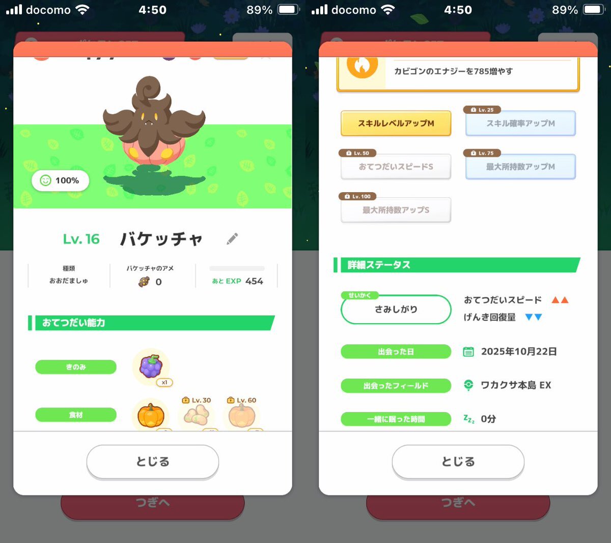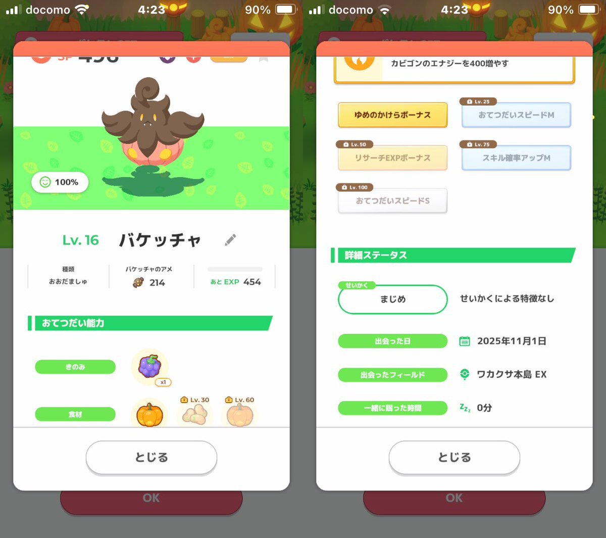 #ポケモンスリープ #うとうと おはようございます☀ パンプジンさんはじめまして。 おこうで来てもらった バケッチャちゃん 満腹にならずにお迎えできました! 性格は良かったです(無補正) ダネちゃんにも全力で ポケサブレを投げました。 pic.x.com/NhMHldc6vT