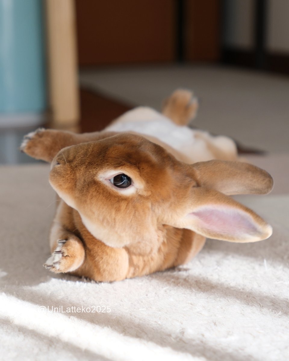 コロンと転がりすぎて、お腹が上を向いたまま 「あれ?」って固まってるうにくん。😅 #ミニレッキス #うさぎのいる暮らし #うにラテ成長記録 pic.x.com/Snnv3PWulX