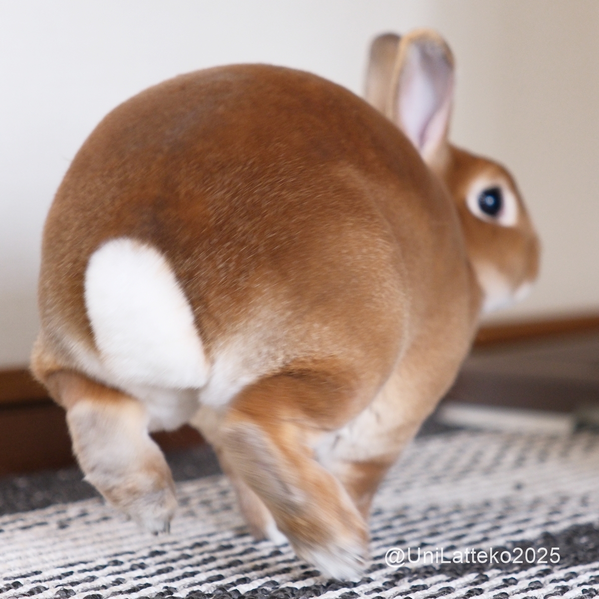 モチモチボディだけど、実は俊足🐰💨 1日の締めくくりは、おやつダッシュ→ジャンプ! 満足したら勝手にケージへ帰宅😂 ※早送りなし #ミニレッキス #うにラテ成長記録 pic.x.com/RPHKtJl6Wu